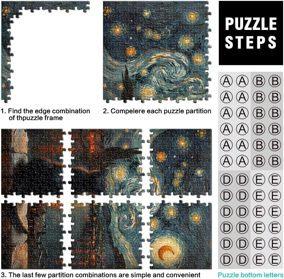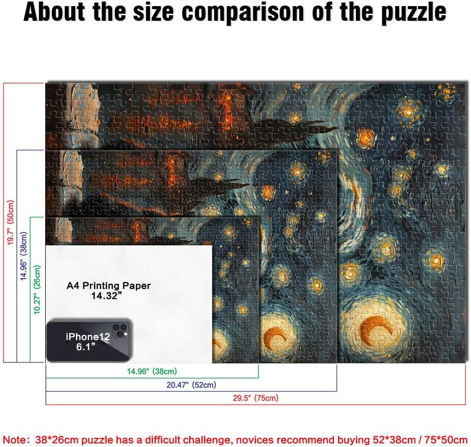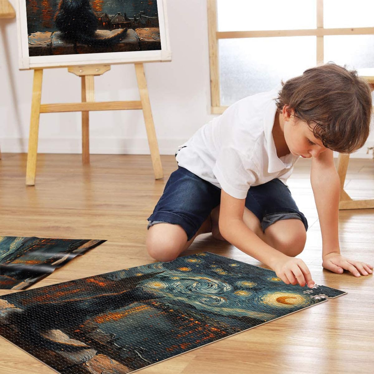Puzzle da 1000 pezzi per adulti Notte stellata e il gatto Fatto di legno Adatto a partire dai 14 anni Antistress Sfida difficile Regalo di compleanno di Natale misurare:50x75cm
