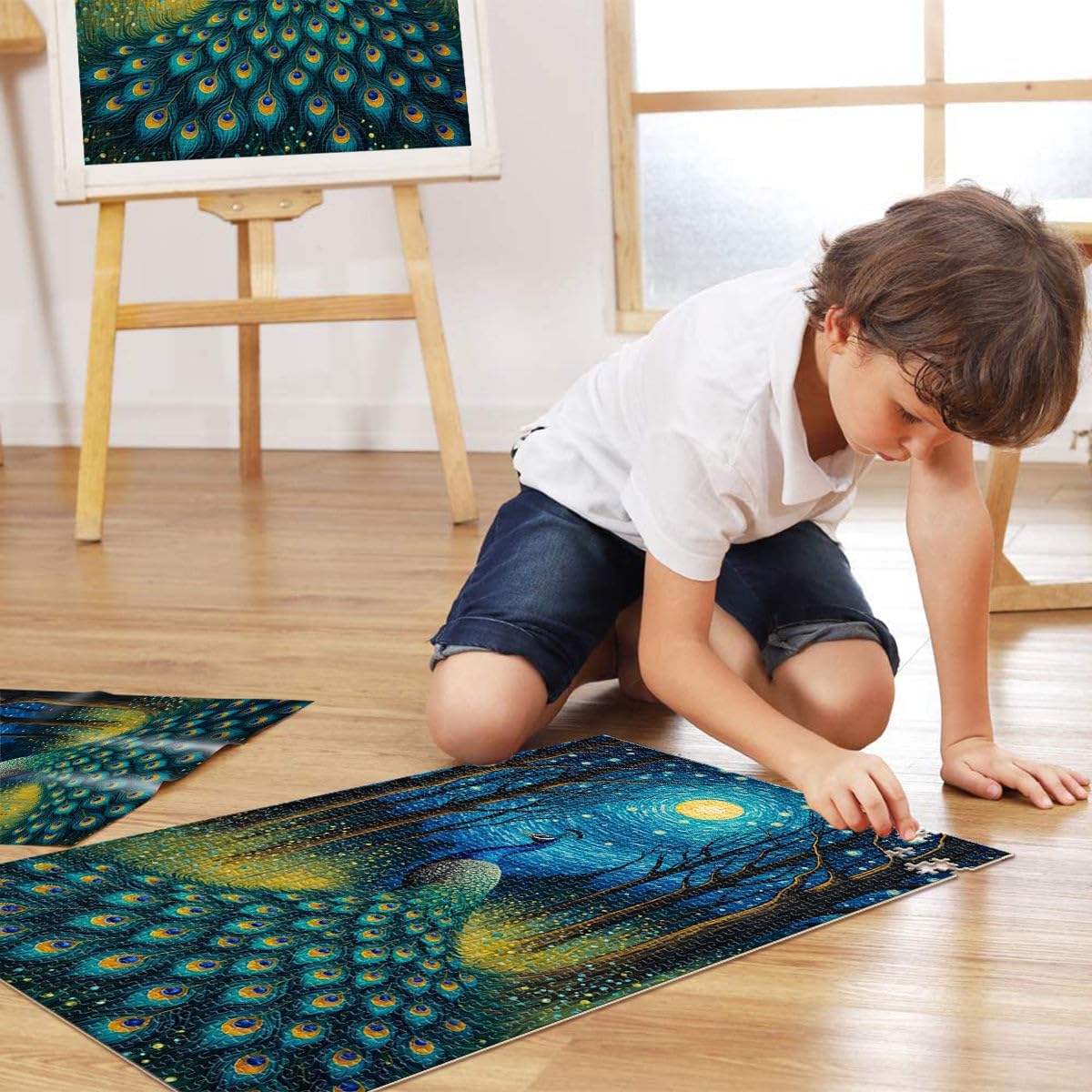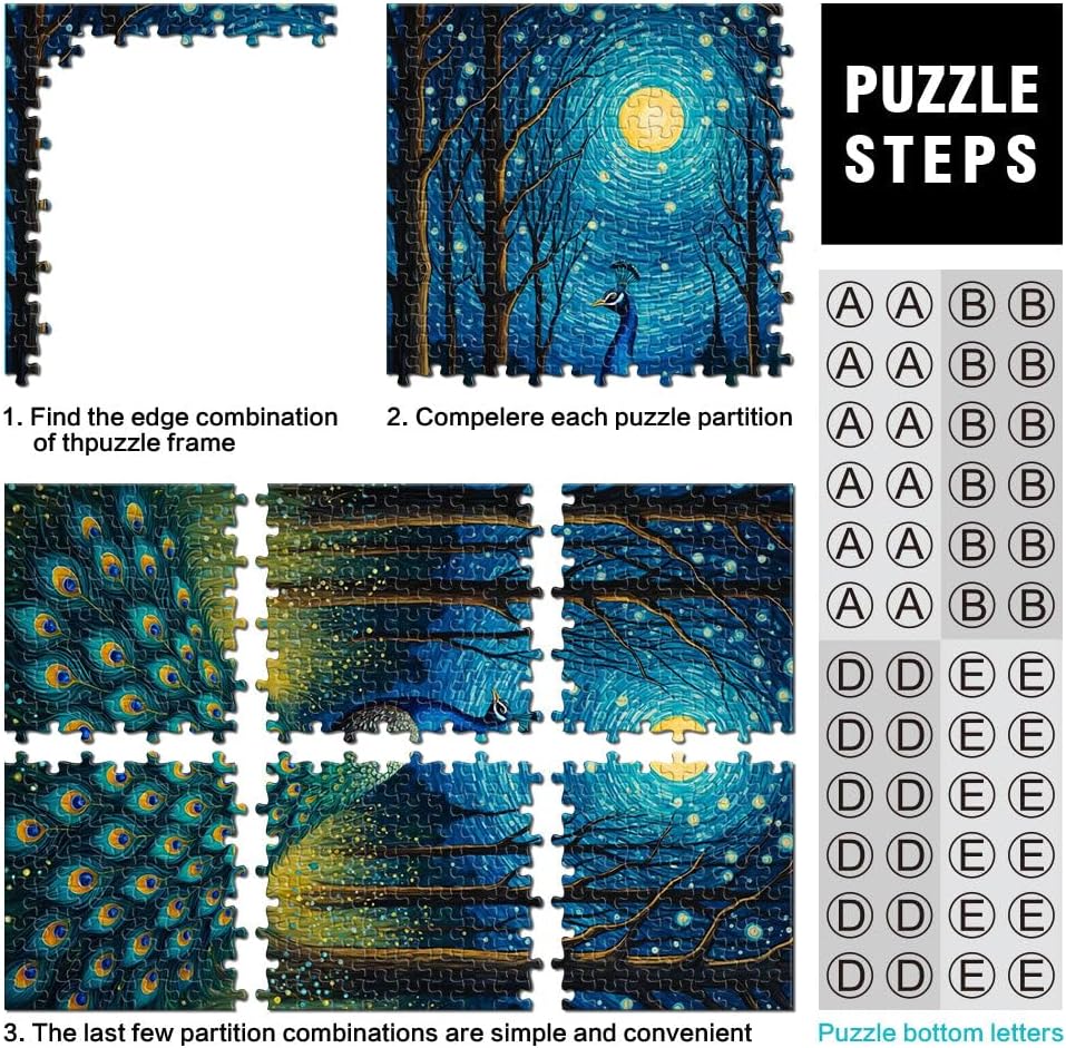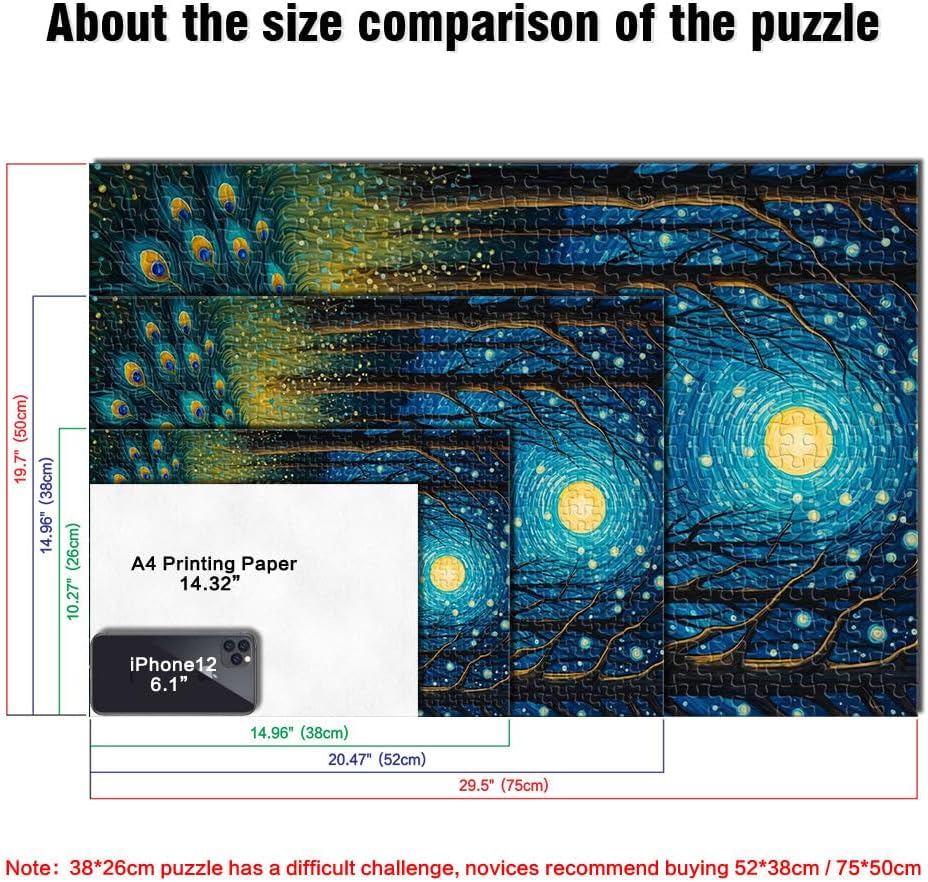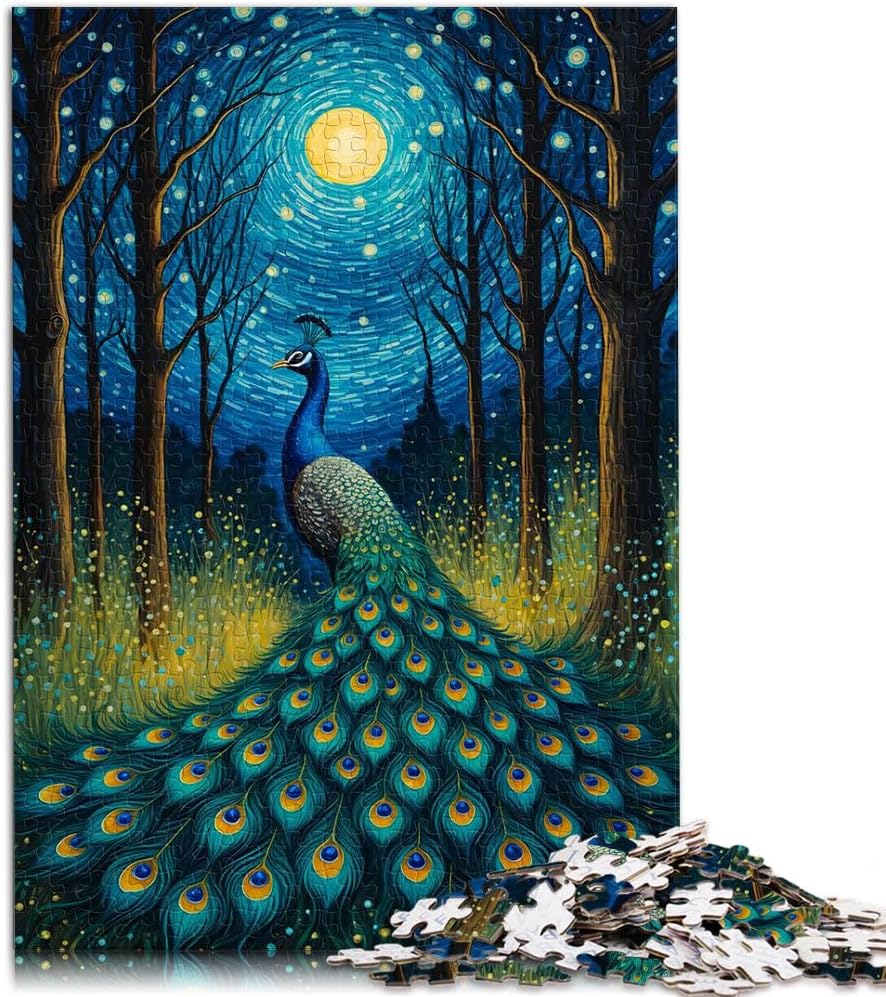 Puzzle da 1000 pezzi per adulti Pavone al chiaro di luna, notte stellata Fatto di legno per età 14+ per il gioco educativo sfida giocattolo Regalo per i compleanni misurare:50x75cm