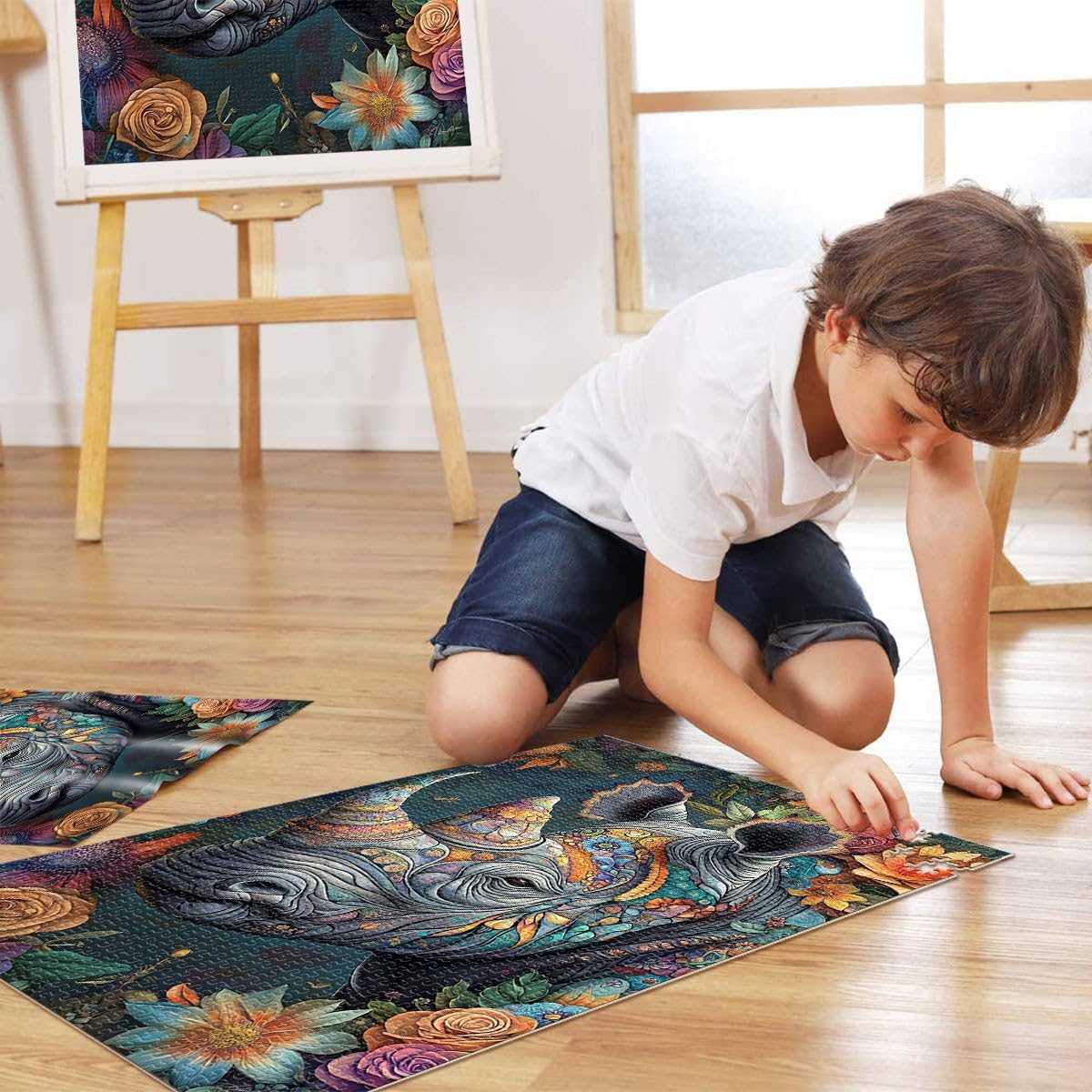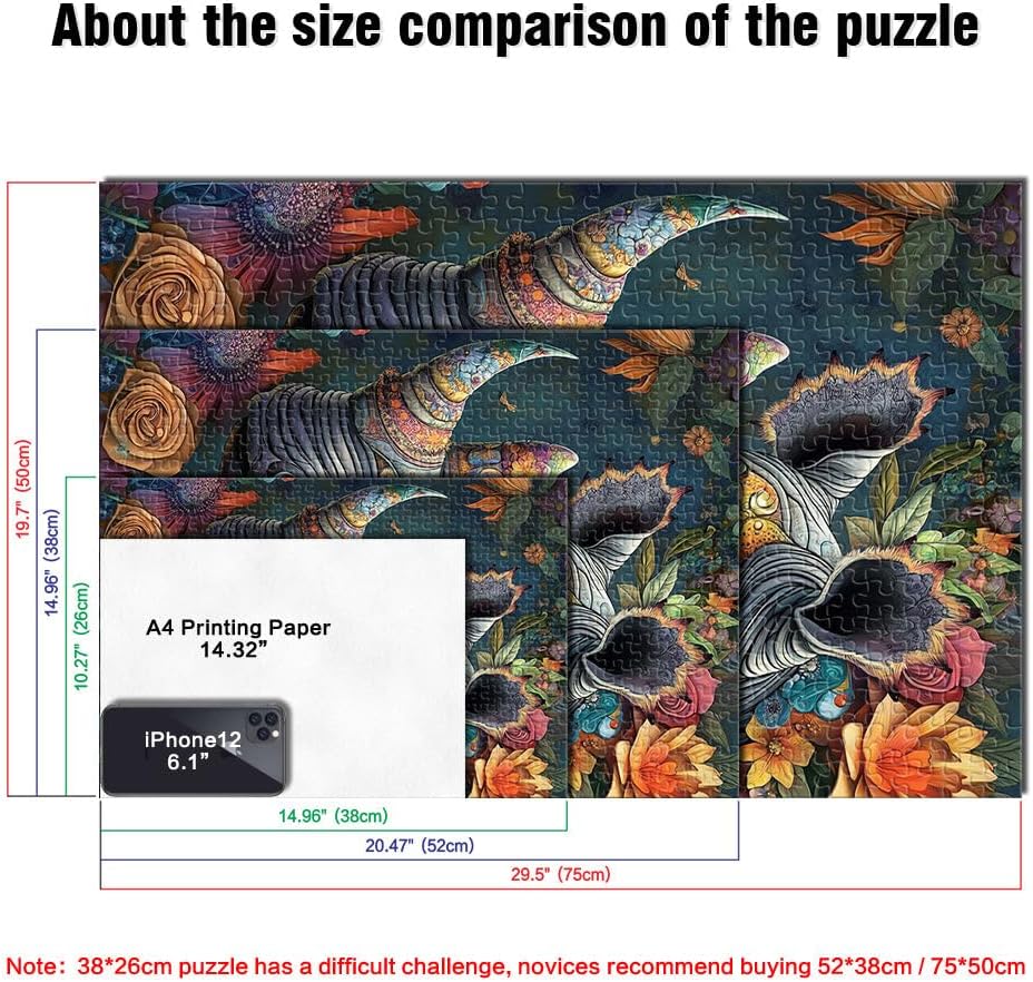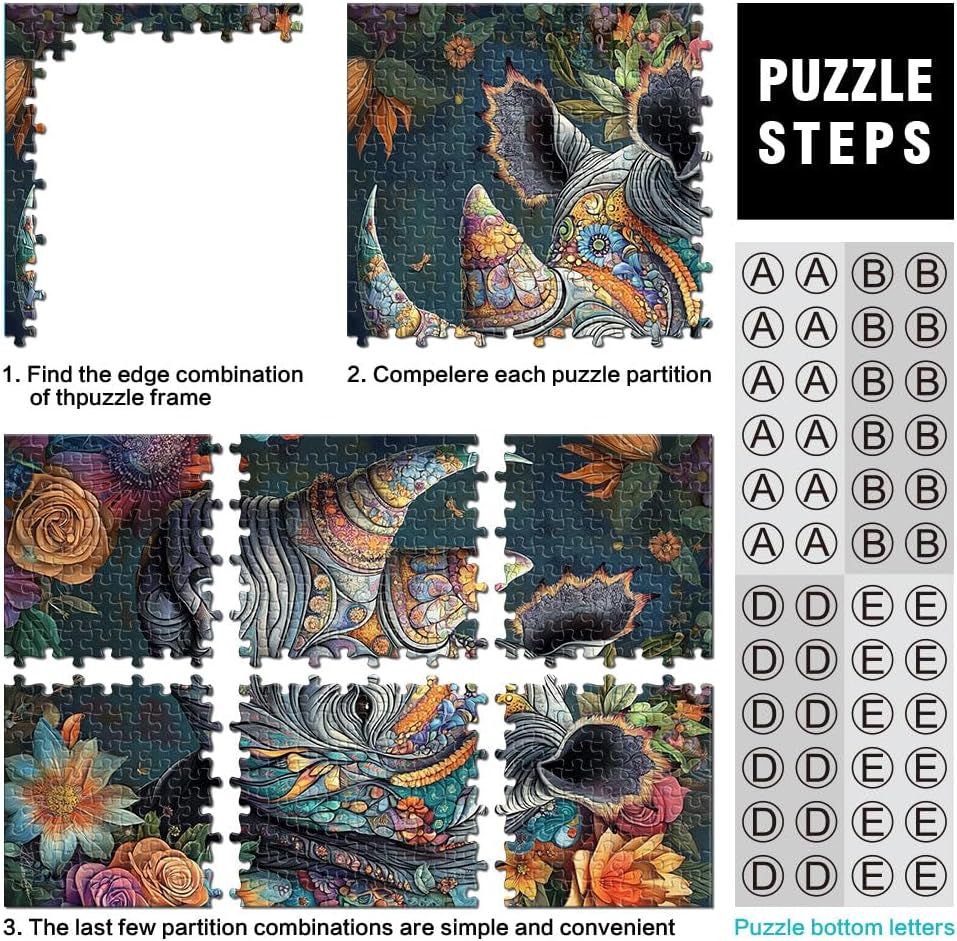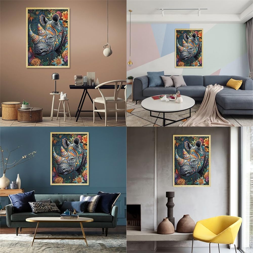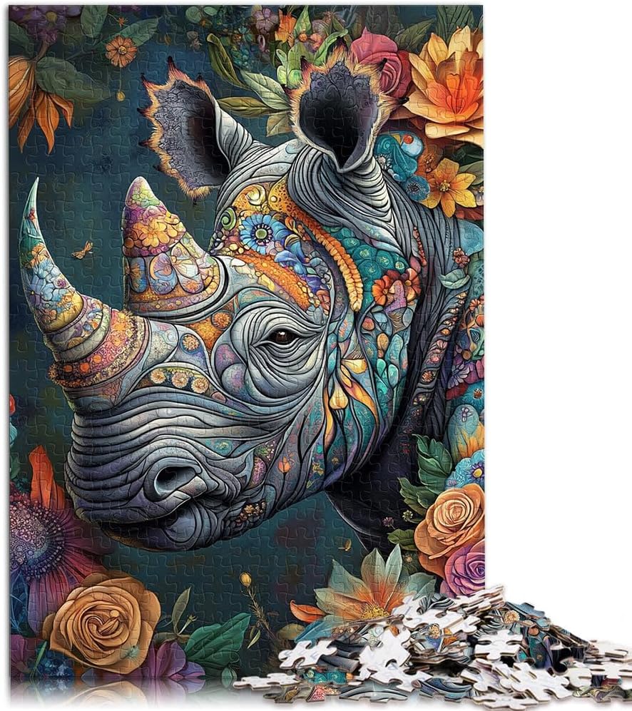 Puzzle da 1000 pezzi per adulti “Rinoceronte animale” Fatto di carta,per età pari o superiore a 14 anni Gioco di puzzle Giochi Giocattoli Regalo。misurare:38x52cm/14.96x20.47pollice