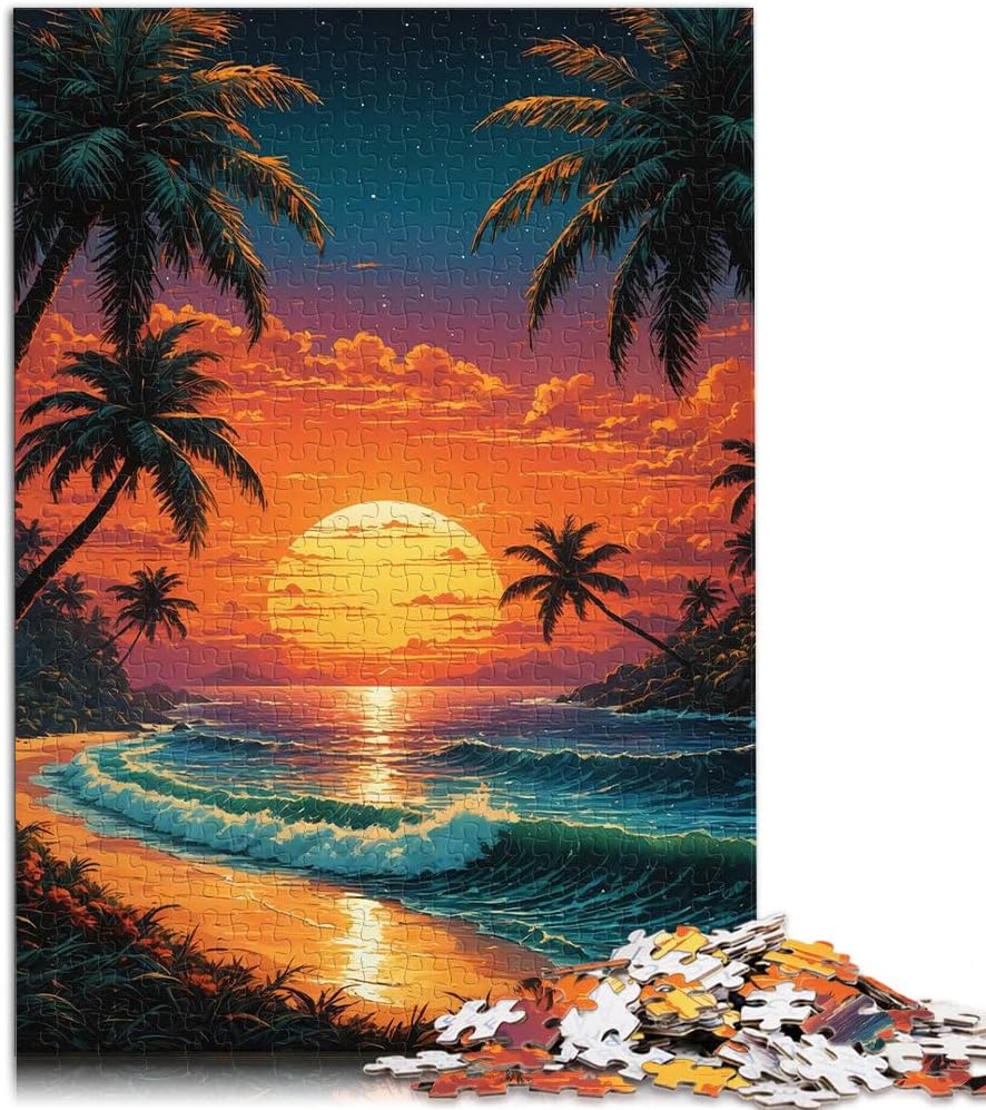 Puzzle da 1000 pezzi per adulti Tramonto tropicale Fatto di legno per età pari o superiore a 14 anni Giocattoli antistress Ottimi regali e giocattoli misurare:50x75cm