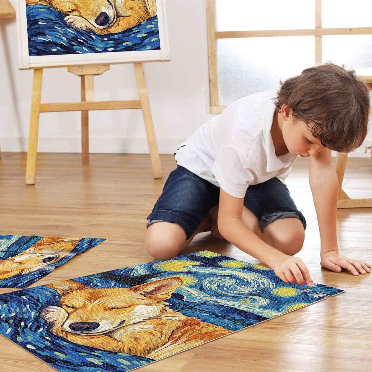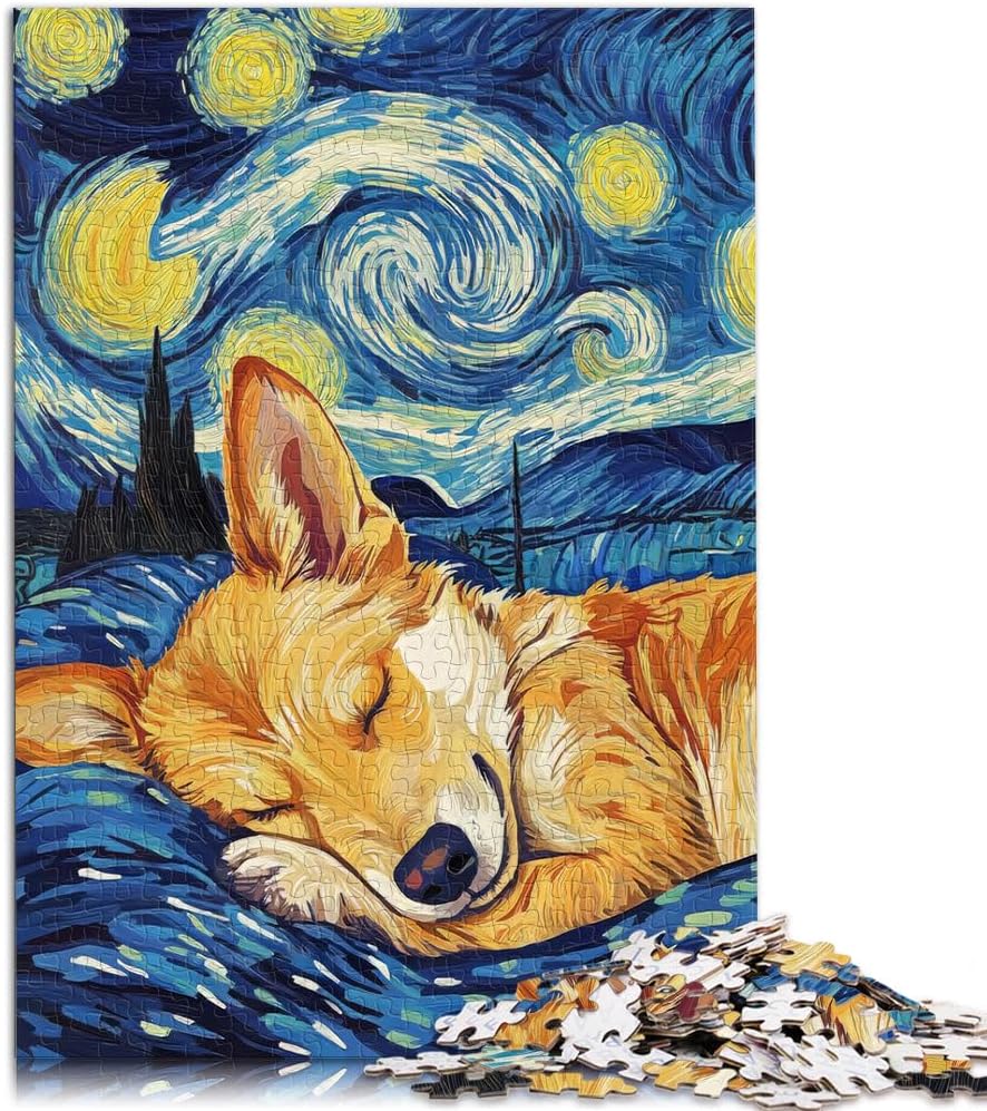 Puzzle da 2000 pezzi con taglio di precisione Corgi nella notte stellata Fatto di cartone per età 14+ Giochi educativi Decorazione della casa Regali di Babbo Natale segreto misurare:70x100cm