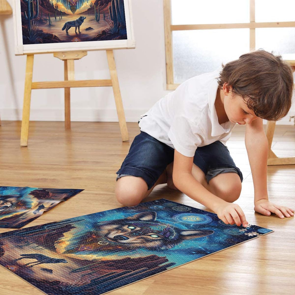 Puzzle da 2000 pezzi per adolescenti Fantasia del lupo Fatto di cartone per età 14+ gioco educativo di apprendimento Migliorare l'amore tra le coppie misurare:70x100cm