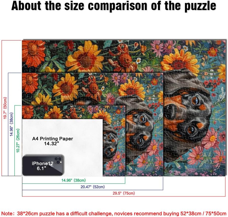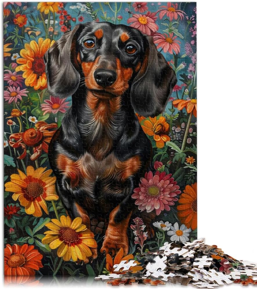 Puzzle da 2000 pezzi per adolescenti Ritratto floreale di bassotto Fatto di cartone per 14+ apprendimento educativo Grande regalo misurare:70x100cm