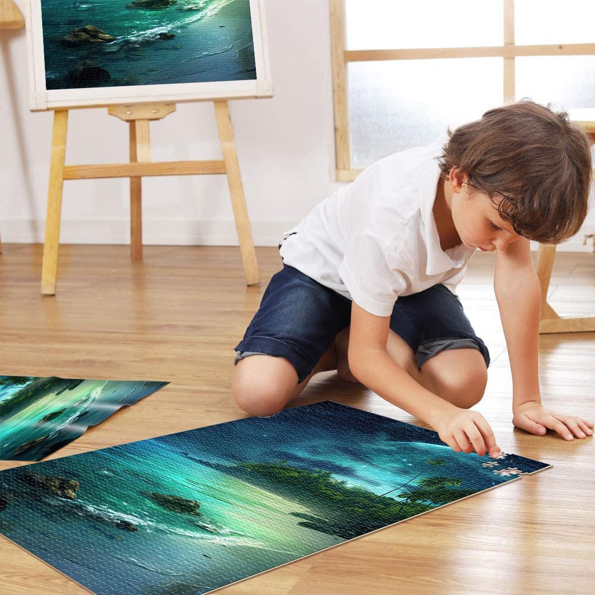 Puzzle da 2000 pezzi per adulti Cielo notturno dell'oceano blu Fatto di cartone per e da 14 anni in su Giocattolo educativo antistress Regalo di compleanno, regali, arte murale misurare:70x100cm