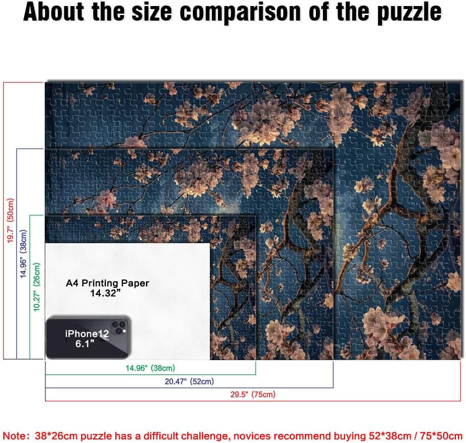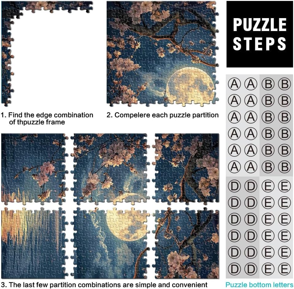 Puzzle da 2000 pezzi per adulti Ciliegio in fiore della luna Fatto di cartone per età 14+ Gioco a quiz Attività divertenti da fare a casa, regali di compleanno, regali di viaggio misurare:70x100cm