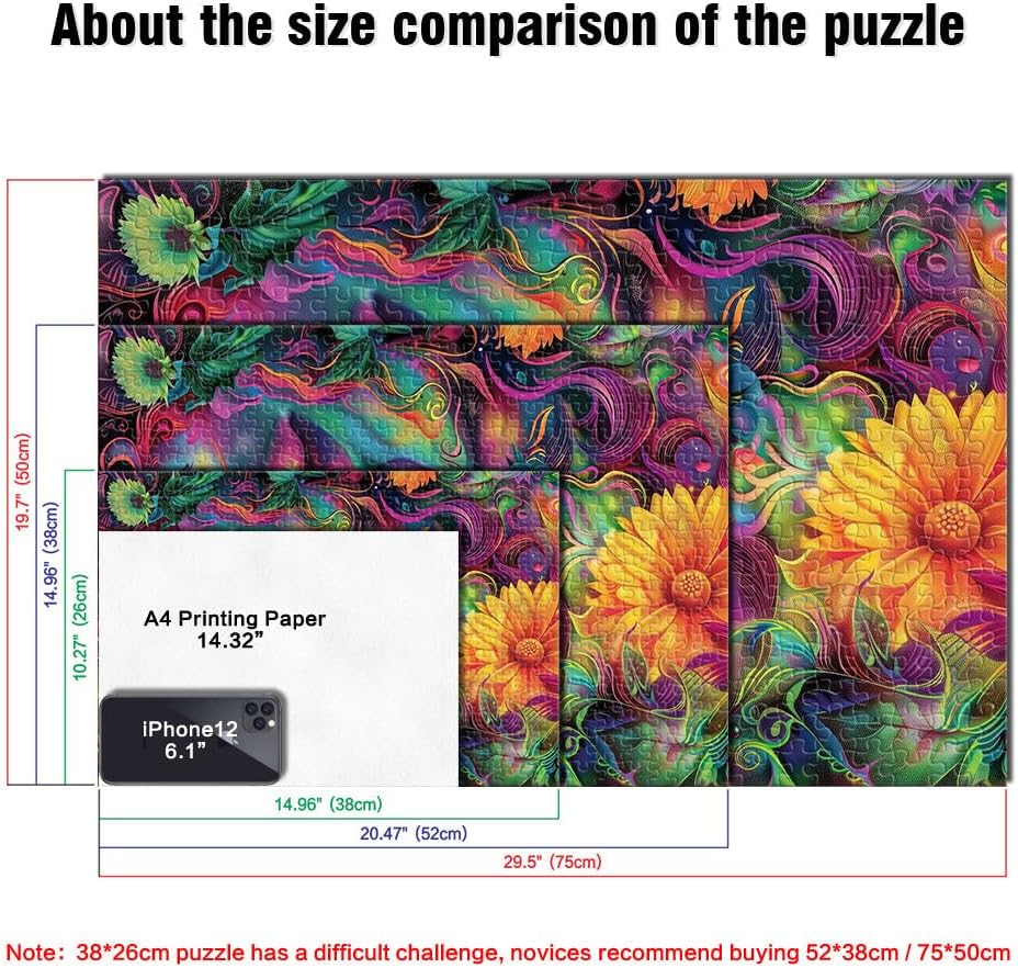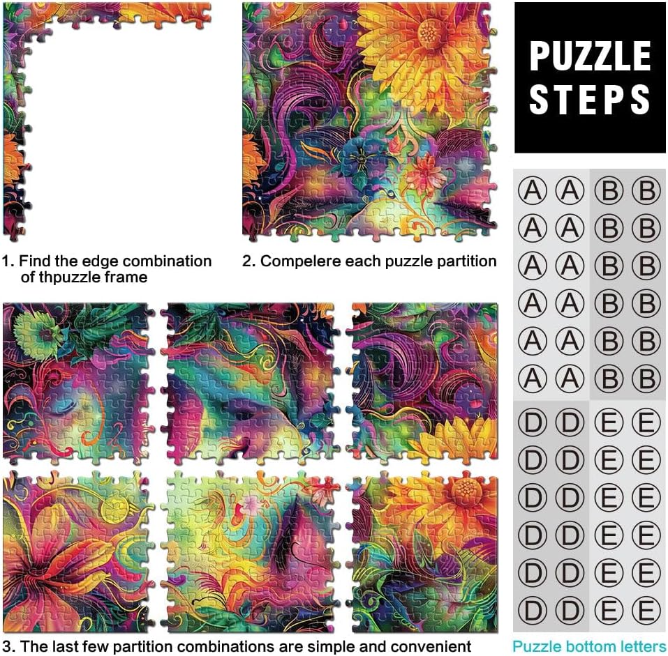 Puzzle da 2000 pezzi per adulti Donna floreale psichedelica Fatto di cartone per età pari o superiore a 14 anni Bellissimo gioco di designBellissimo gioco di design Un'opera d'arte misurare:70x100cm