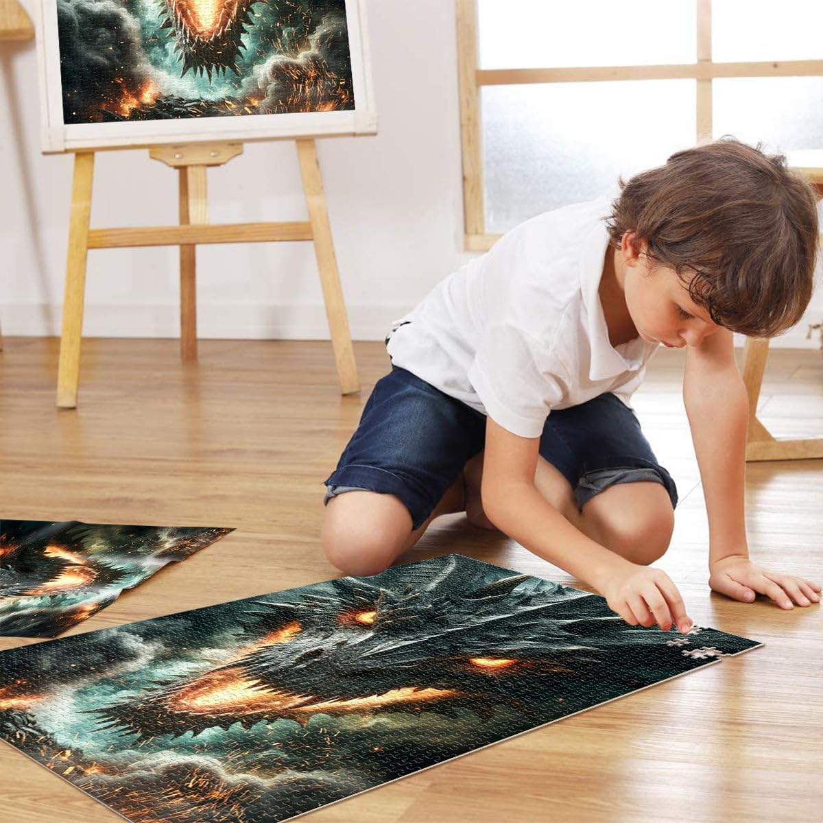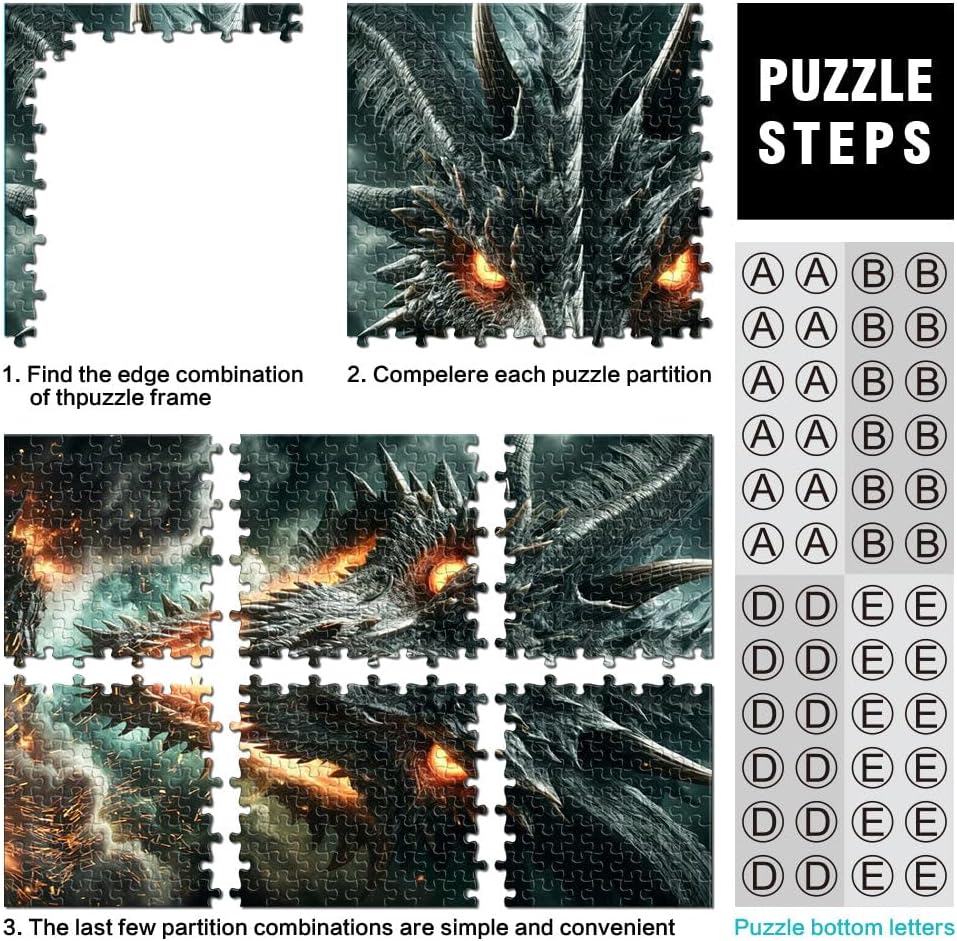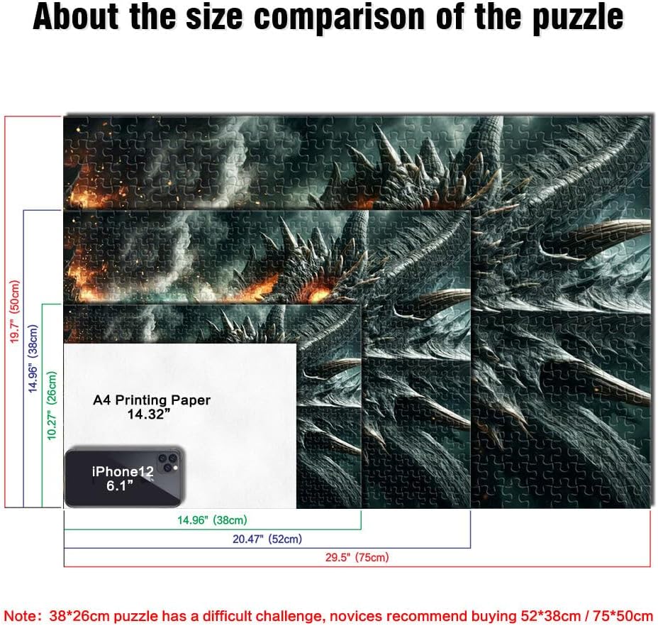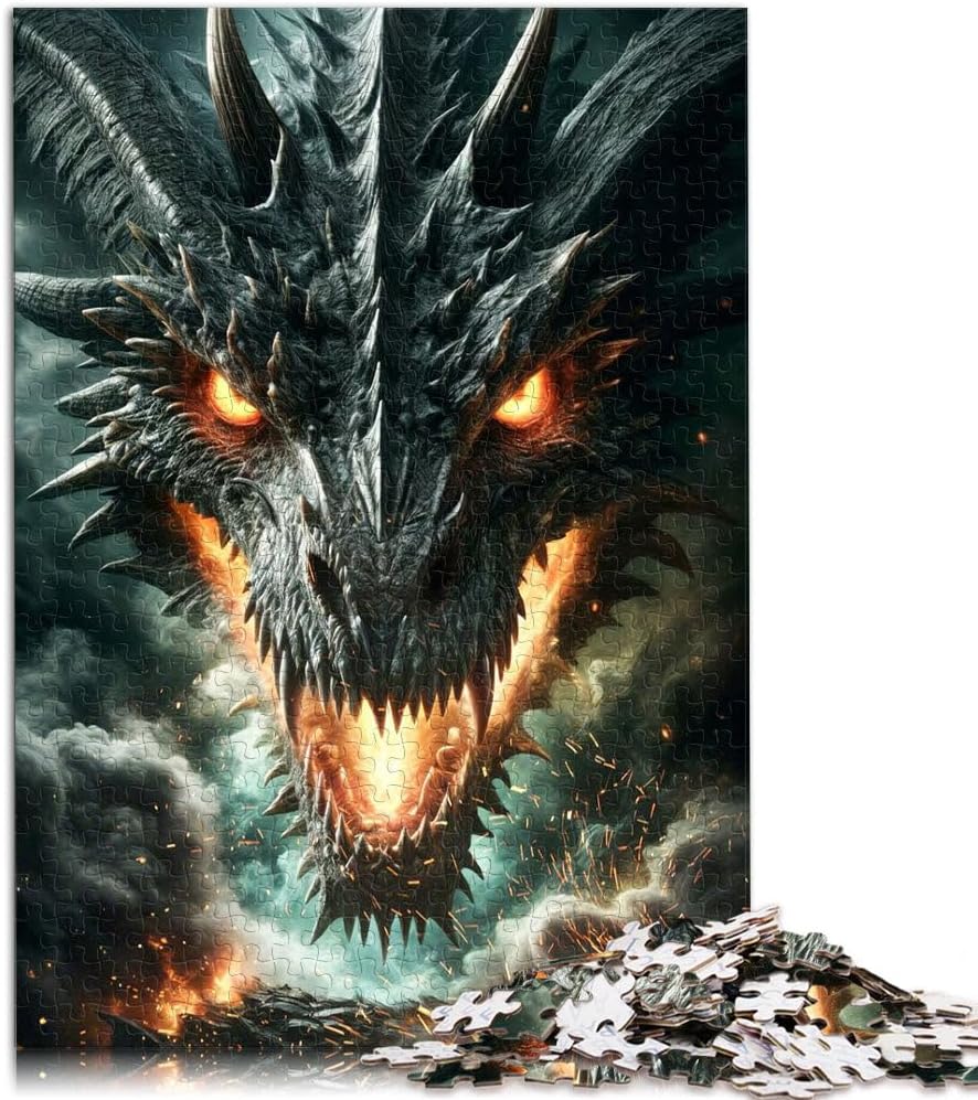Puzzle da 2000 pezzi per adulti e adolescenti Furia del Drago Nero Infuocato Fatto di cartone Adatto a partire dai 14 anni Giocattoli fai da te Regali unici per compleanno e Natale misurare:70x100cm