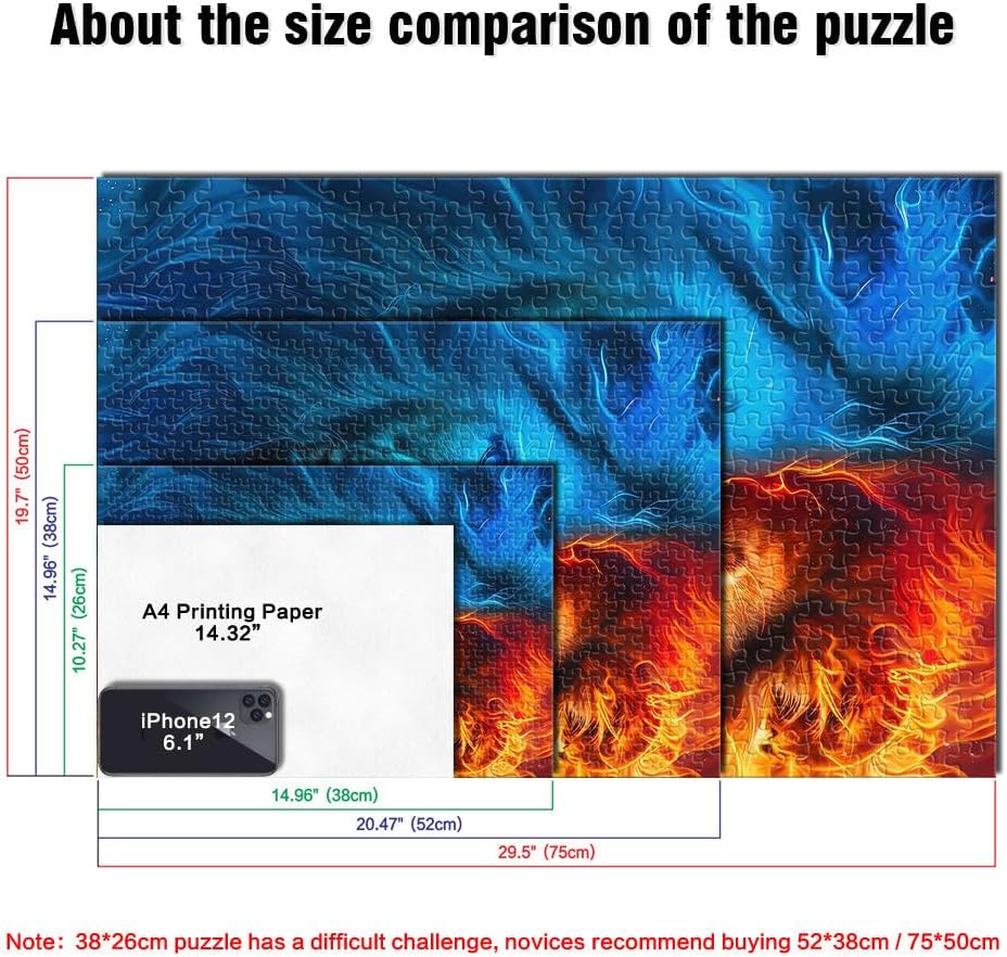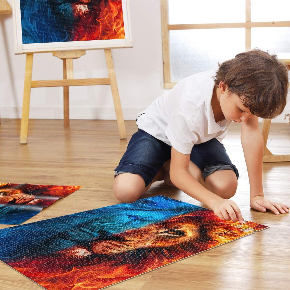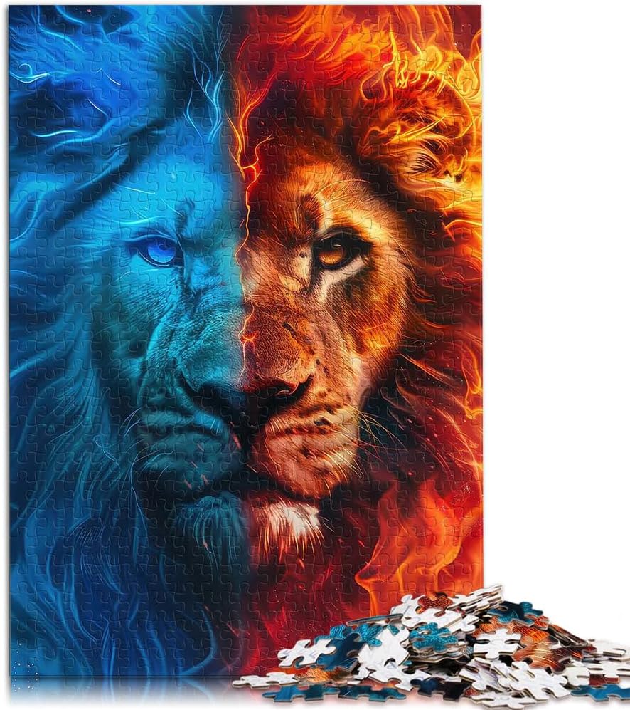 Puzzle da 2000 pezzi per adulti e adolescenti Leone di fuoco e ghiaccio Adatto a partire dai 14 anni Gioco a quiz Attività divertenti da fare a casa, regali di compleanno, regali di viaggio