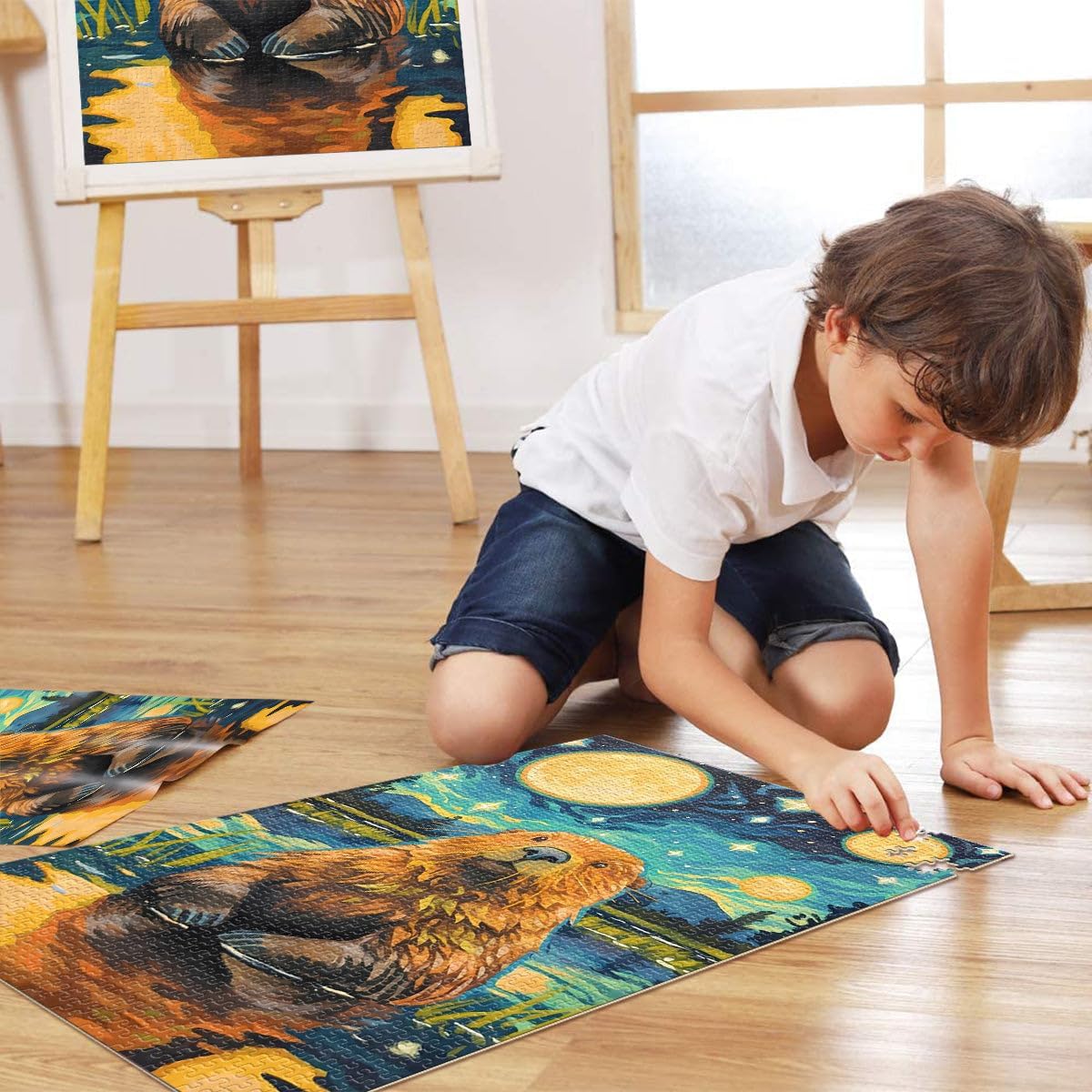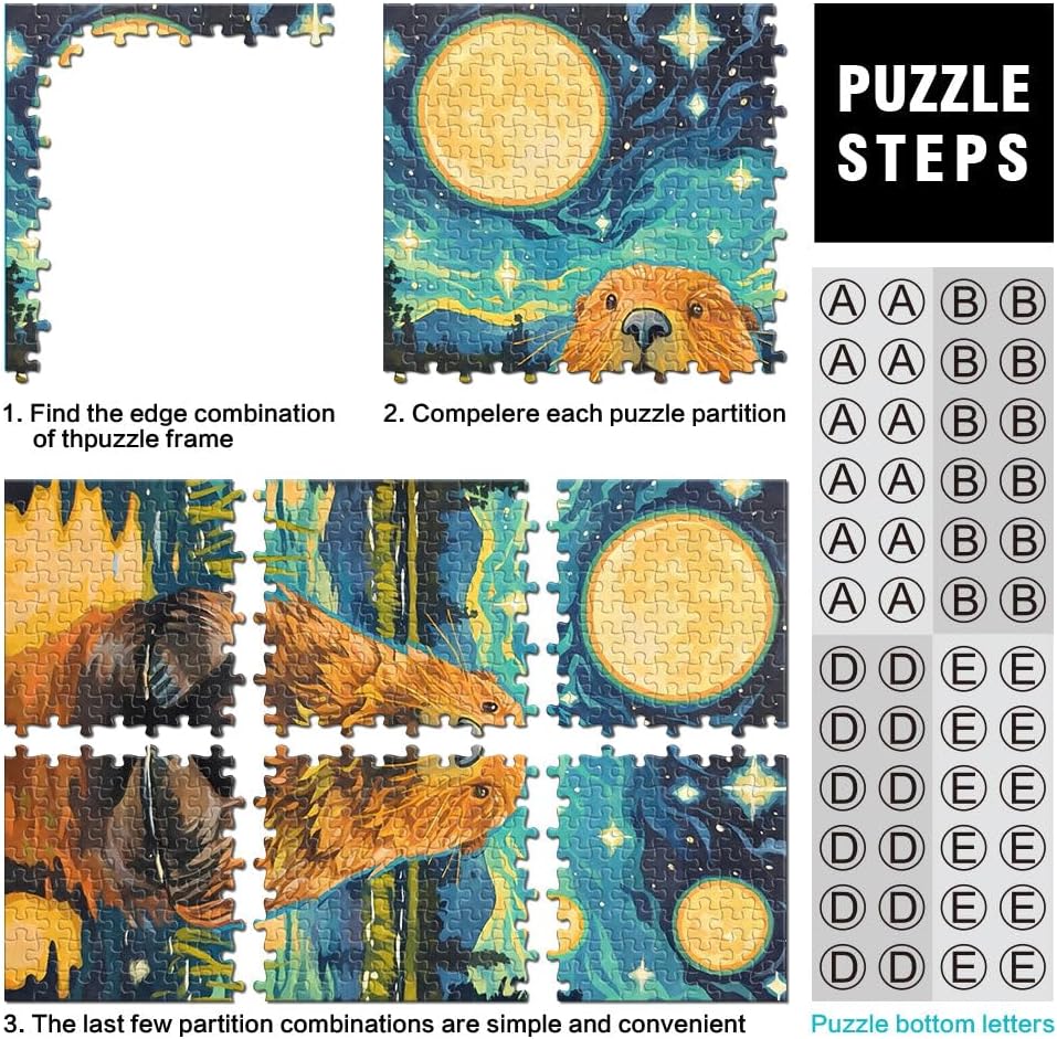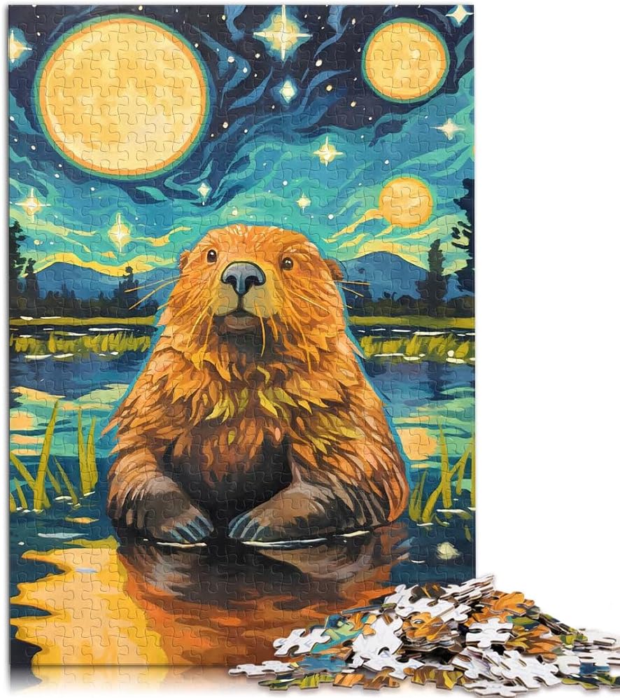 Puzzle da 2000 pezzi per adulti e adolescenti Notte stellata del castoro carino Fatto di cartone per età 14+ Gioco antistress per famiglie, sfida difficile Idee regalo misurare:70x100cm