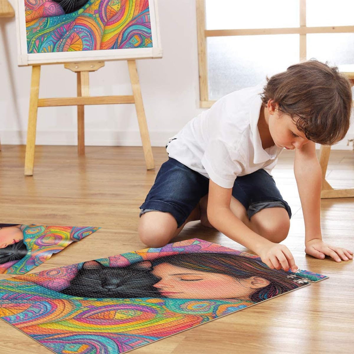 Puzzle da 2000 pezzi per adulti e adolescenti Piccolo pisolino con un simpatico gatto Fatto di cartone per età 14+ Sfida di gioco educativo giocattolo Ottimo regalo per i videogiochi misurare:70x100cm