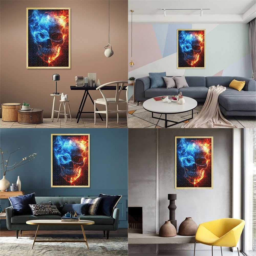 Puzzle da 2000 pezzi per adulti e adolescenti Teschio di fuoco e ghiaccio Fatto di cartone Adatto a partire dai 14 anni Giochi di famiglia offerte come regali per tutta la famiglia misurare:70x100cm