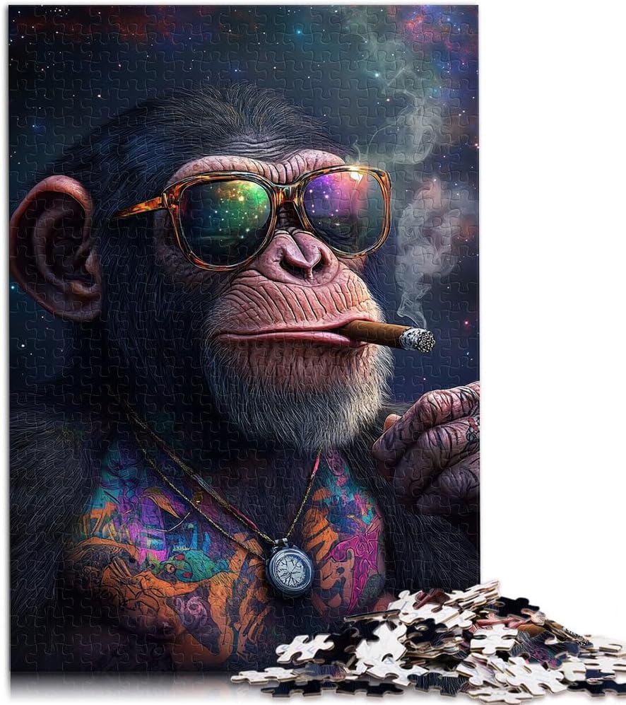 Puzzle da 2000 pezzi per adulti e adolescenti Un orango funky che fuma un sigaro Adatto a partire dai 14 anni Giocattolo educativo antistress Regalo di compleanno, regali, arte murale