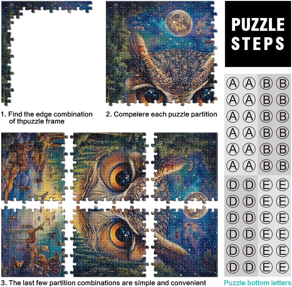 Puzzle da 2000 pezzi per adulti Gufo dipinto a colori Fatto di cartone per età pari o superiore a 14 anni Regali per la decorazione della casa Regali unici per compleanno e Natale misurare:70x100cm