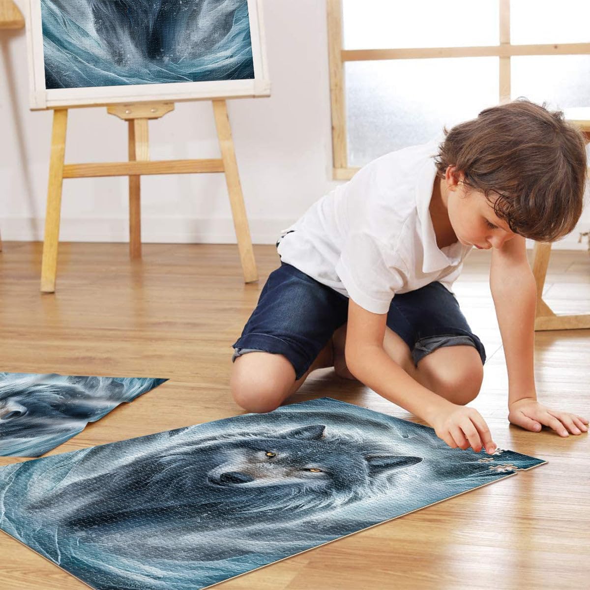 Puzzle da 2000 pezzi per adulti Lupo dell'era glaciale Fatto di cartone da 14 anni in su Gara di velocità a mano Regali di compleanno di Natale misurare:70x100cm
