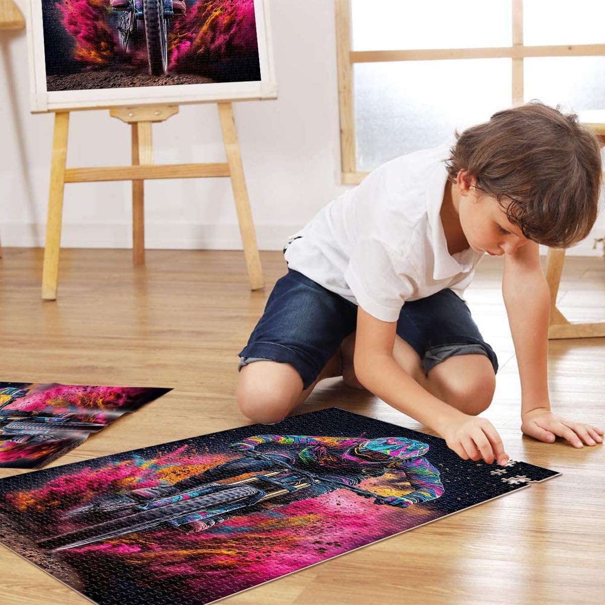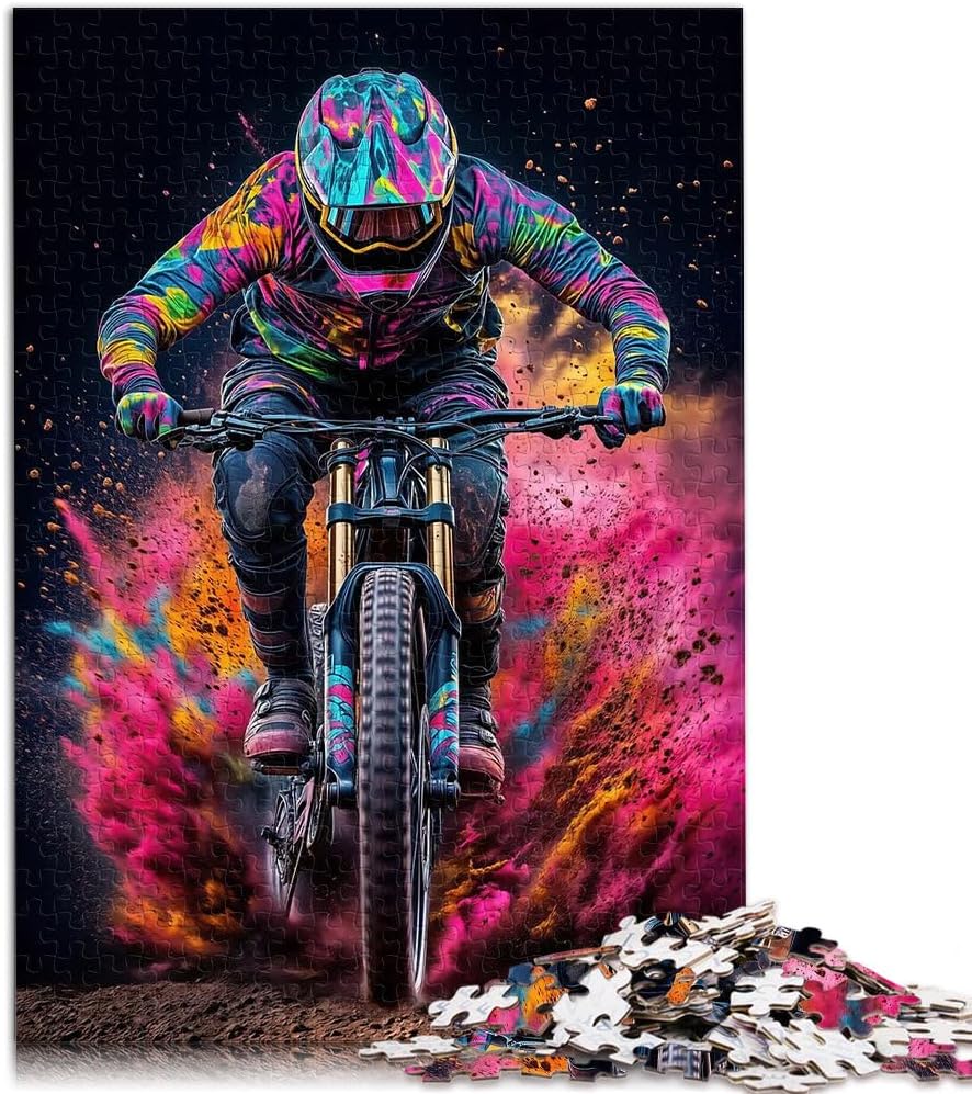 Puzzle da 2000 pezzi per adulti Mountain Biker in Color Blast Fatto di cartone per età 14+ sfida educativa Attività divertenti a casa, regali di compleanno, regali di viaggio misurare:70x100cm