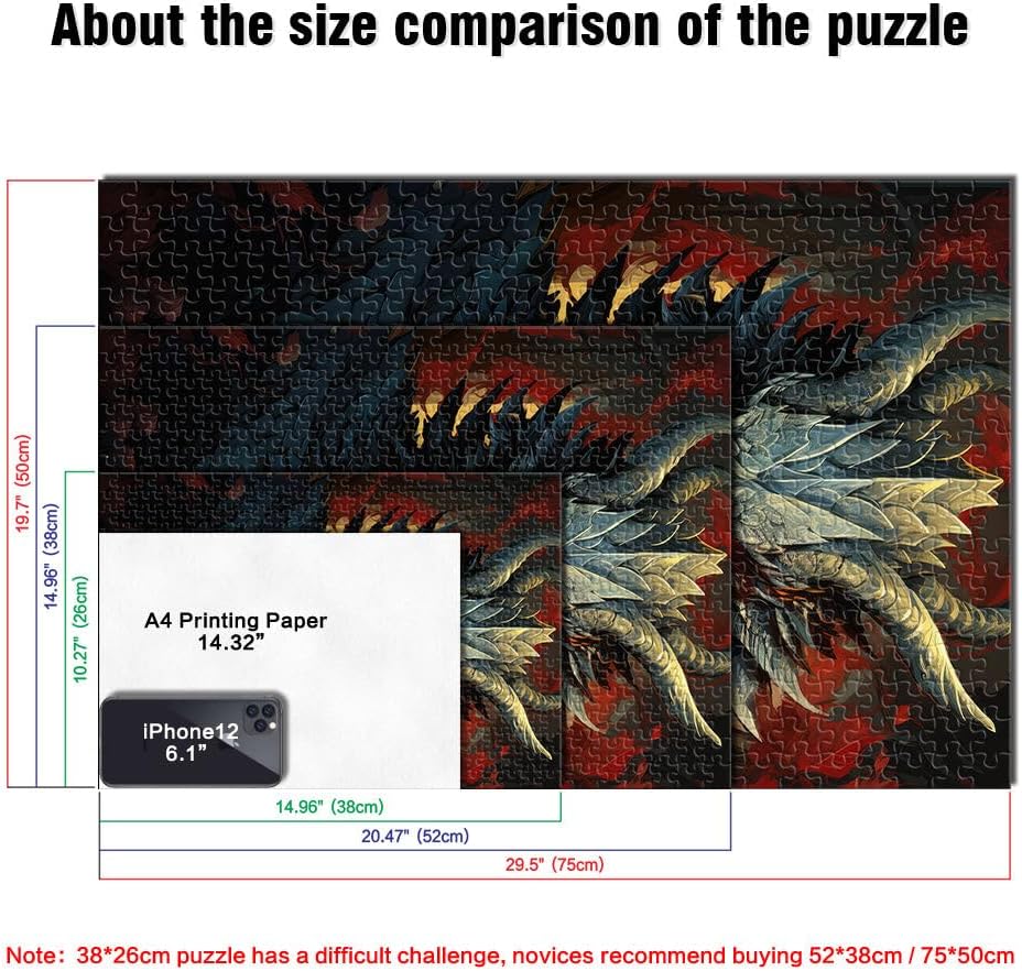Puzzle da 2000 pezzi per adulti Opera d'arte dei draghi Fatto di cartone Adatto a partire dai 14 anni Gioco giocattolo intellettuale Gioco educativo per compleanno e Natale misurare:70x100cm