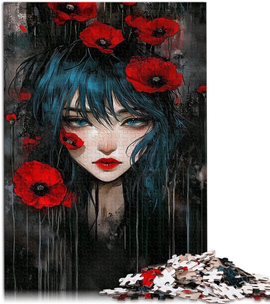 Puzzle da 2000 pezzi per adulti Ragazza e fiori di papavero Fatto di cartone per età pari o superiore a 14 anni Allena il tuo cervello e le tue mani Regali di gioco di Natale misurare:70x100cm