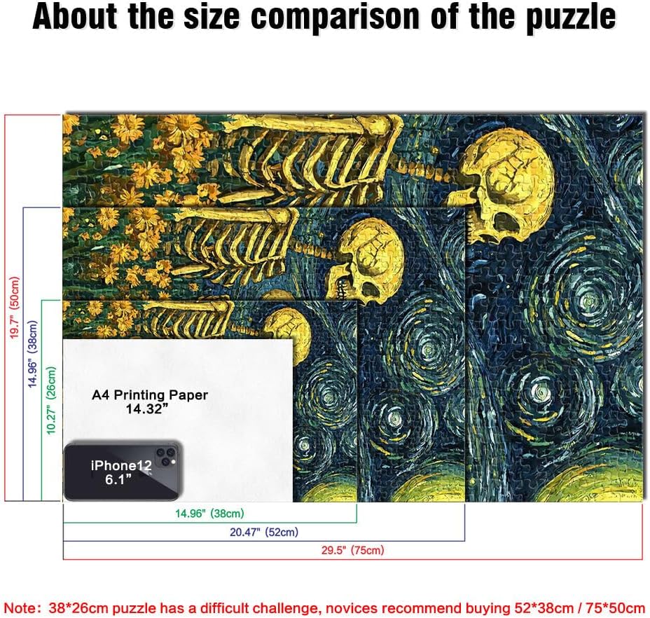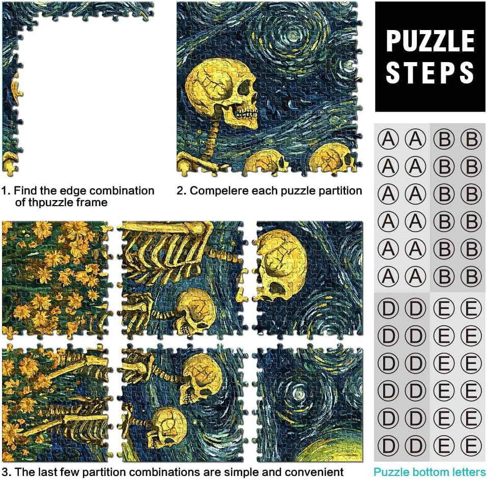 Puzzle da 2000 pezzi per adulti Scheletri Notte Stellata Fatto di cartone per età pari o superiore a 14 anni per la decorazione della casa Idee regalo misurare:70x100cm