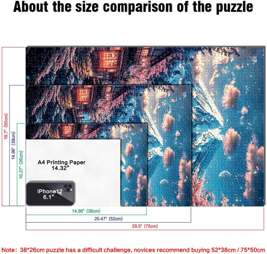 Puzzle da 2000 pezzi per adulti vista del monte Fuji giapponese Fatto di cartone per età 14+ Gioco intellettuale Regalo divertente per la famiglia misurare:70x100cm