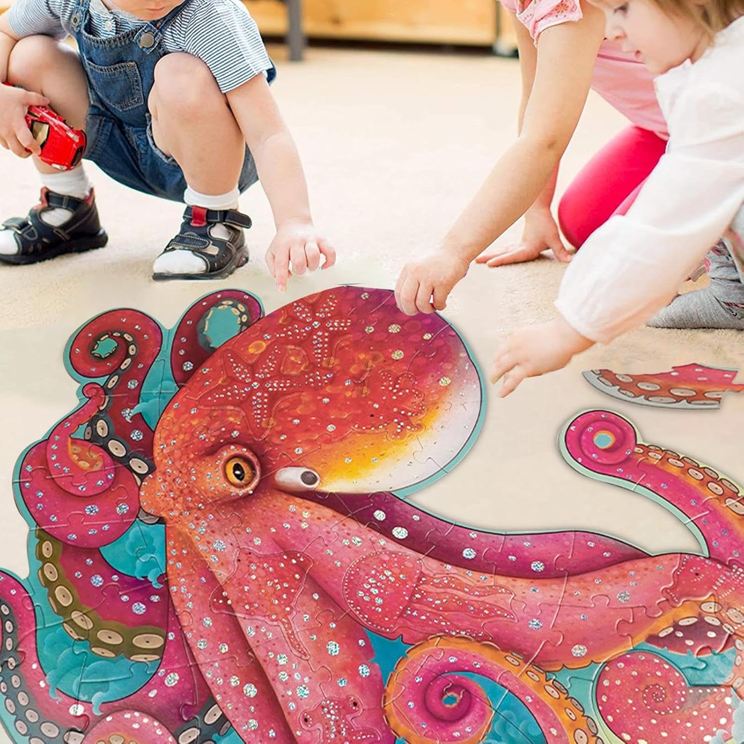 Design vivace: questo puzzle da pavimento glitterato presenta un accattivante design a forma di polipo, che cattura l'attenzione dei bambini fornendo stesso un modo coinvolgente per sviluppare le capacità motorie e migliorare le loro esperienze sensoriali attraverso immagini colorate e scintillanti Vantaggi educativi: progettato per stimolare il pensiero logico, questo nuovo puzzle incoraggia la risoluzione dei problemi e lo sviluppo cognitivo, rendendolo un eccellente strumento educativo per genitori e insegnanti che desiderano promuovere le capacità di pensiero critico nei bambini Materiale robusto: realizzato con materiali non tossici di alta qualità, questo puzzle da pavimento glitterato è costruito per resistere al gioco attivo, garantendo che rimanga intatto per un uso ripetuto e offrendo stesso un'esperienza sicura e divertente per i bambini Divertimento interattivo: perfetto per il gioco da solo o per attività di gruppo, questo simpatico puzzle promuove l'interazione sociale, incoraggiando i bambini a lavorare insieme, condividere e apprendere preziose abilità di lavoro di mentre si divertono ad assemblare i pezzi vivaci di gioco versatile: adatto a vari ambienti, tra cui case, aule e appuntamenti di gioco, questo puzzle sensoriale può essere utilizzato come strumento di apprendimento divertente, un'attività rilassante o un modo per migliorare le capacità motorie, rendendolo un'aggiunta versatile a qualsiasi collezione di giocattoli