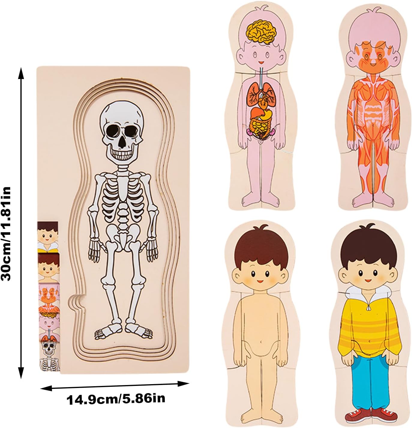 Divertimento cognitivo: con tacche facili da afferrare, questo puzzle corporeo per bambini semplifica l'accesso e la disposizione dei pezzi e incoraggia i bambini a imparare da soli. Sviluppa giovani menti: il puzzle del corpo umano per bambini sviluppa capacità di risoluzione dei problemi nei bambini mentre apprendono l'anatomia umana. Questa integrazione unica di elementi di gioco e di apprendimento migliora la coordinazione occhio-mano. Adatto ai bambini: utilizzando materiale in legno sicuro e innocuo, questo puzzle presenta bordi lisci ed è costruito per offrire infiniti vantaggi educativi ai tuoi piccoli. Ampiamente usato: un puzzle coinvolgente ed educativo che i genitori possono utilizzare a casa con i bambini. È anche un versatile sussidio didattico per gli insegnanti scolastici, che migliora la comprensione degli studenti con una varietà di applicazioni. Apprendimento completo: i bambini comprendono la struttura di base del corpo umano e, con questo puzzle, si immergono nei suoi misteri, scoprono le complesse connessioni tra le sue parti e acquisiscono solide basi in biologia.