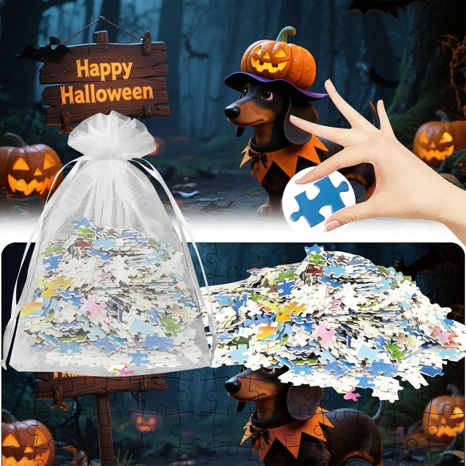 Maniabilità Sicura: Bordi arrotondati e design studiato per la sicurezza, offrendo un'interazione protetta per bambini e un'esperienza piacevole per ogni età durante il gioco. Decorazione Stagionale: Arricchisci la tua casa con questo puzzle artistico per Halloween come decorazione muraria valorizza lo spirito autunnale e offre un'esposizione raffinata una volta completato Puzzle Festivo Colorato: Una combinazione cromatica vivace unita a motivi halloween elaborati dà vita a temi festivi, proponendo un'attività coinvolgente che celebra lo spirito stagionale attraverso l'arte dei dettagli Esperienza Educativa: Migliora concentrazione e pensiero logico rafforzando l'osservazione promuovendo lo sviluppo cognitivo attraverso un apprendimento immersivo e divertente per tutte le età Collaborazione Genitore-Figlio: Affrontate una di 130 pezzi per ispirare la risoluzione condivisa di problemi, approfondire il familiare attraverso attività coinvolgenti e migliorare efficacemente la comunicazione durante il gioco festivo