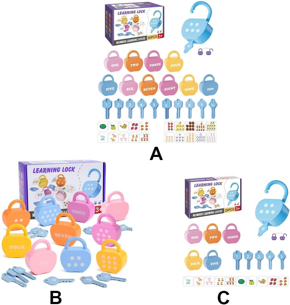 Gioco interattivo con serratura e chiave: questo giocattolo educativo combina interazioni divertenti con numeri e lettere, aiutando i bambini piccoli a sviluppare la coordinazione e la precisione delle mani quando azionano i pulsanti Gioco di sblocco dell'abbinamento digitale: migliora le capacità di riconoscimento dei colori e dei numeri dei bambini con questo giocattolo coinvolgente, che offre attività di potenziamento del cervello per incoraggiare la memoria e le capacità di risoluzione dei problemi Giocattolo puzzle per bambini da addestramento: questo giocattolo educativo per la prima infanzia con puzzle sbloccabile è progettato per introdurre numeri e lettere in modo divertente e interattivo, per lo sviluppo dei bambini piccoli Mirato a introdurre numeri e lettere attraverso interazioni divertenti: questo gioco di sblocco di numeri e lettere è strumento che consente ai bambini di imparare divertendosi, promuovendo lo sviluppo cognitivo in un giocoso Aiuta i bambini piccoli a sviluppare la coordinazione e la precisione delle mani quando azionano i pulsanti: questo giocattolo per sbloccare le chiavi non intrattiene, ma migliora anche le capacità motorie e le capacità di risoluzione dei problemi in modo stimolante