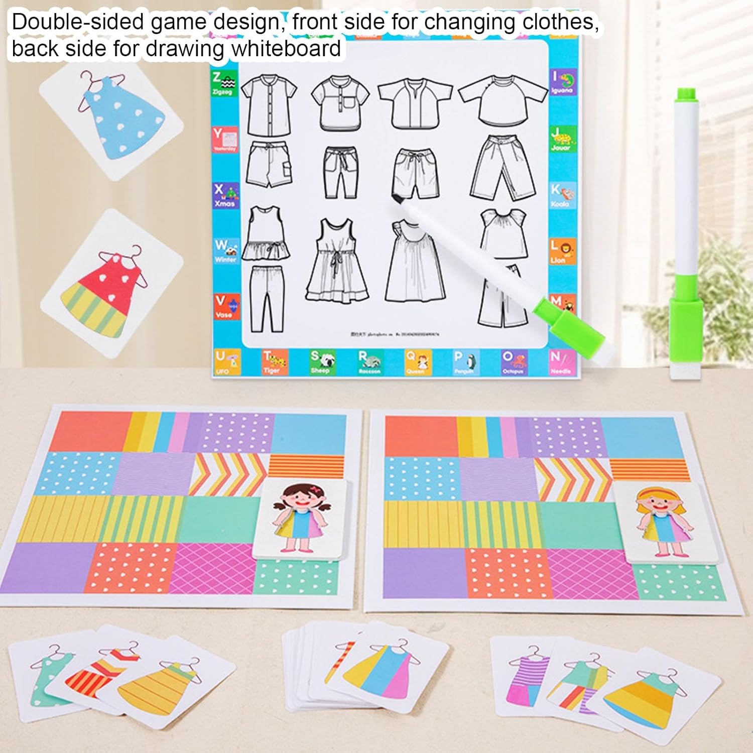 Imparare attraverso il gioco: il nostro gioco di cambiare i vestiti aiuta a sviluppare il pensiero logico e la coordinazione occhio-mano, stimolando al stesso la fiducia in se stessi e l'estetica artistica. Guida i bambini a padroneggiare la cognizione delle immagini e le capacità motorie ed espande la loro cognizione Sbocco artistico: sblocca la creatività di tuo figlio con questo tavolo da disegno a doppia faccia. Il tabellone di battaglia sull'altro lato è perfetto per risolvere enigmi. Insieme, un giocattolo versatile che intratterrà ed istruirà il tuo bambino per ore Sicuro per i bambini: i bordi finemente lavorati e i materiali inodore rendono questo gioco di cambio vestiti Dress-up Puzzle completamente sicuro da maneggiare per i bambini. Goditi ore di divertimento senza preoccupazioni Modo d'uso: migliora le capacità di risoluzione dei problemi di tuo figlio abbinando le carte dei personaggi ai colori sul tabellone per completare lo schema. Il nostro gioco Cambia vestiti è un modo coinvolgente per migliorare lo sviluppo cognitivo Usi versatili: il nostro gioco di cambio vestiti per bambini dai 3 anni in su favorisce la curiosità, l'avventura e il gioco fantasioso, offrendo più divertimento a ragazzi e ragazze, promuovendo al conla loro creatività e capacità motorie.
