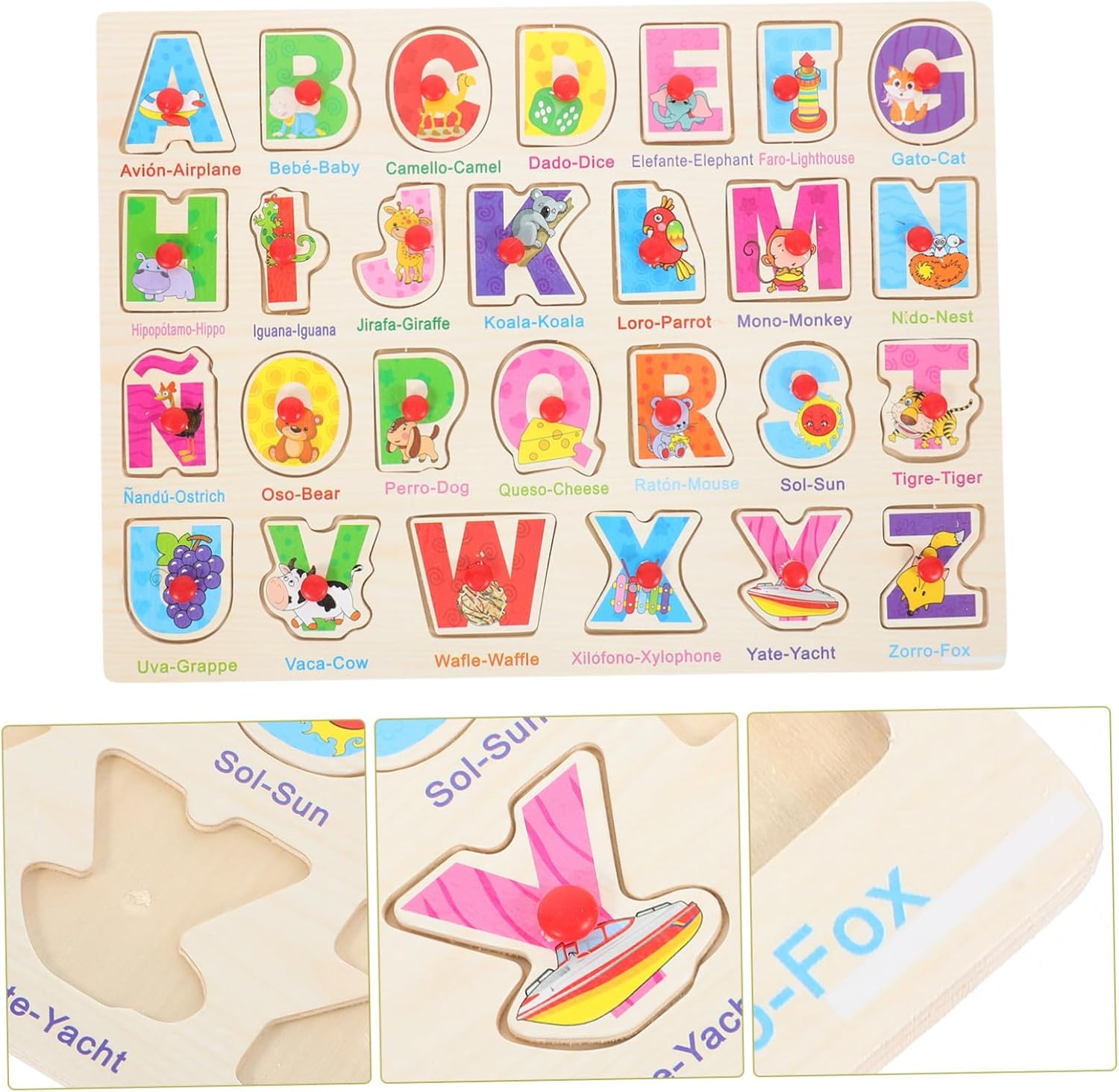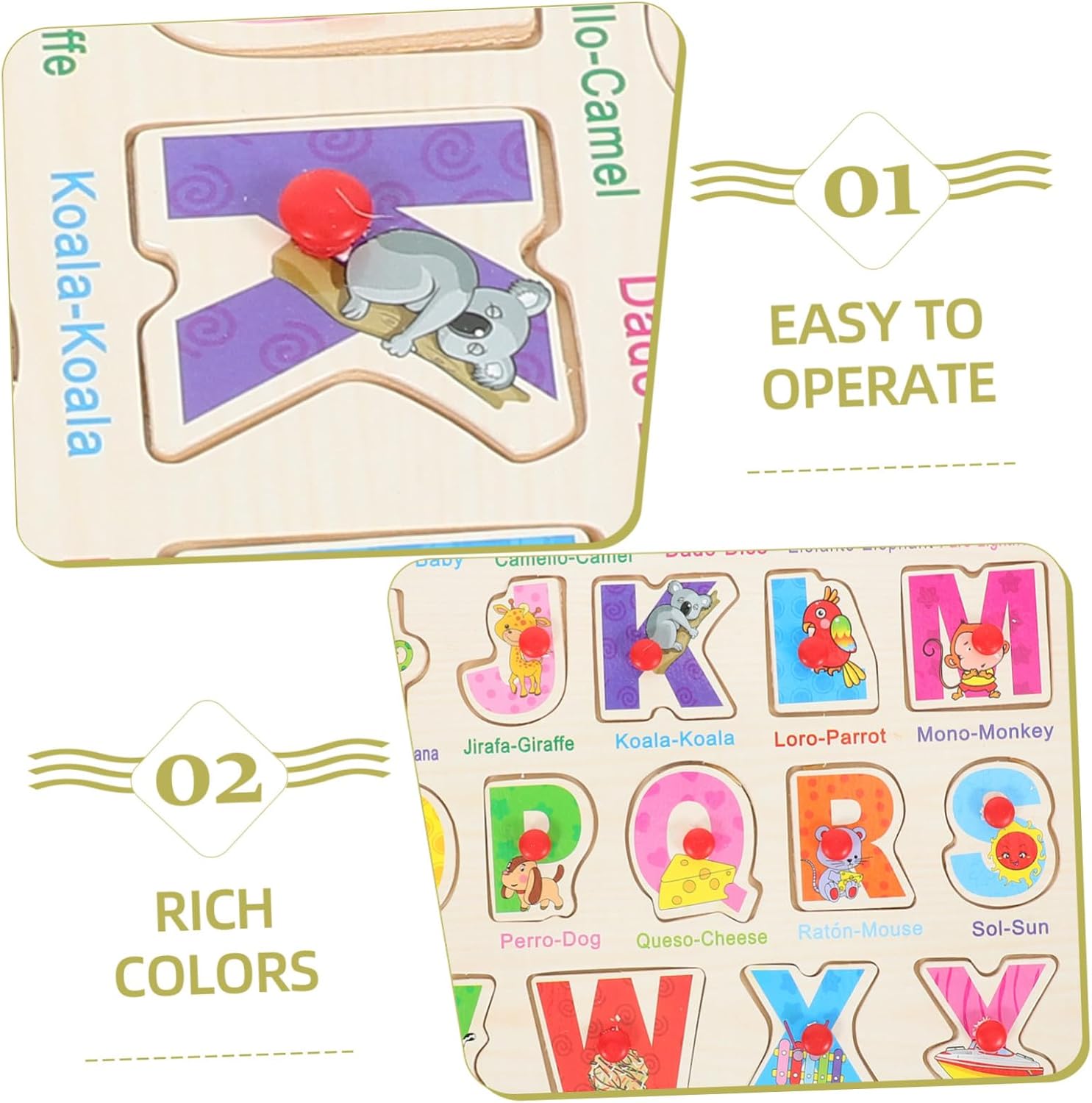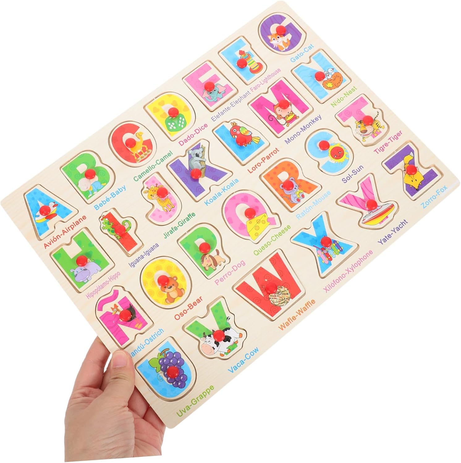 L'abbinamento delle parole - questo puzzle spagnolo - può insegnare al bambino la lingua spagnola e capirla, il puzzle per bambini Montessori - per l'educazione precoce - migliora la resistenza alle sfide e li aiuta efficacemente a migliorare le loro capacità di discriminazione, pensiero e osservazione. Puzzle per imparare la lingua spagnola Puzzle per bambini piccoli - I bambini completano il puzzle manipolando i pezzi di legno per ricordarne la forma, Giocattoli per bambini Giocattoli per imparare lo spagnolo - Inserisci il pezzo di legno in quello giusto per apprendere abilità cognitive e di accoppiamento. Questo puzzle in legno è un ottimo aiuto didattico per la casa, la scuola e la scuola. Ordinamento dei giocattoli per i più piccoli Giocattoli coordinati per bambini in età prescolare: facili e comodi da usare, non facili da rompere o deformare, riutilizzabili e utilizzabili a lungo, puzzle a forma geometrica