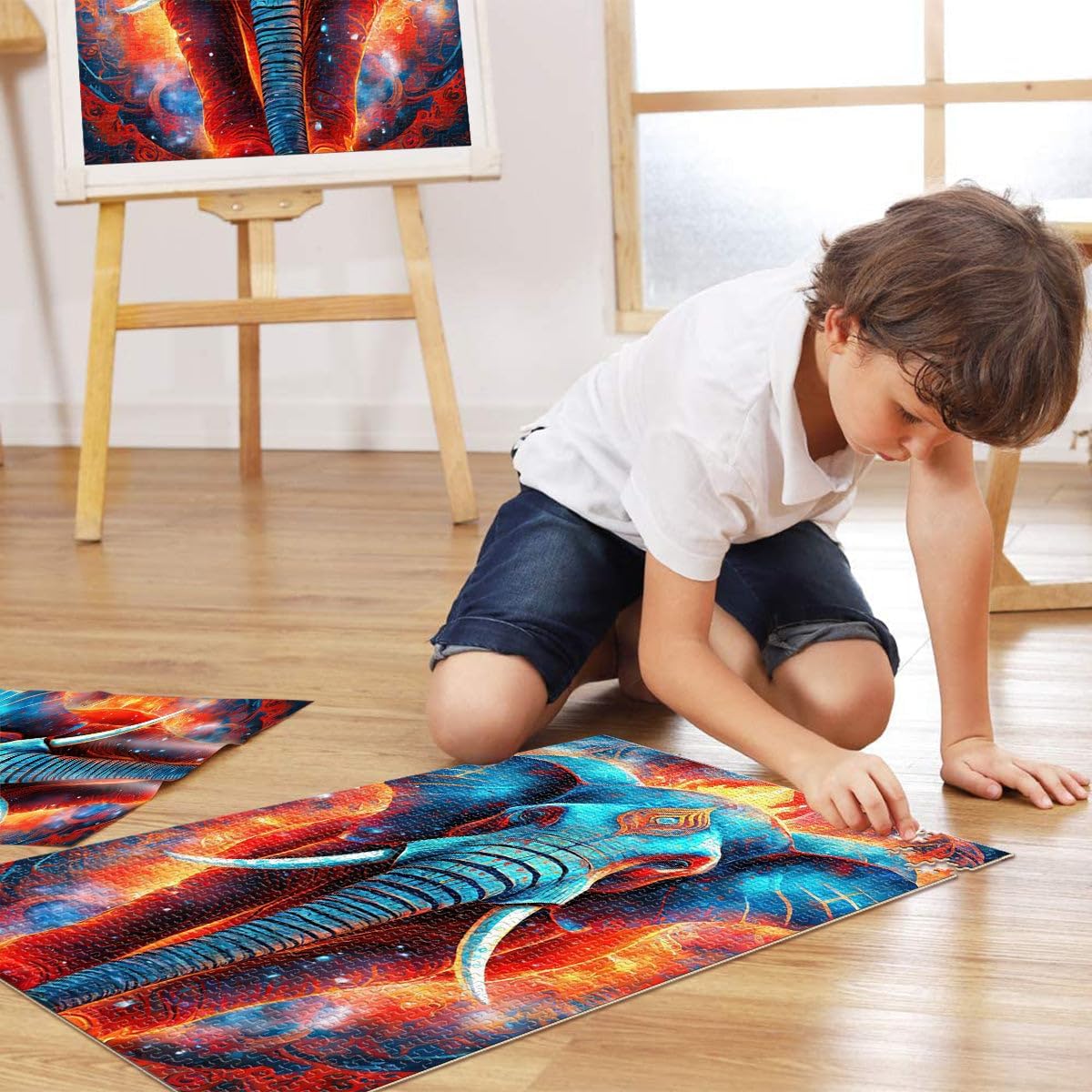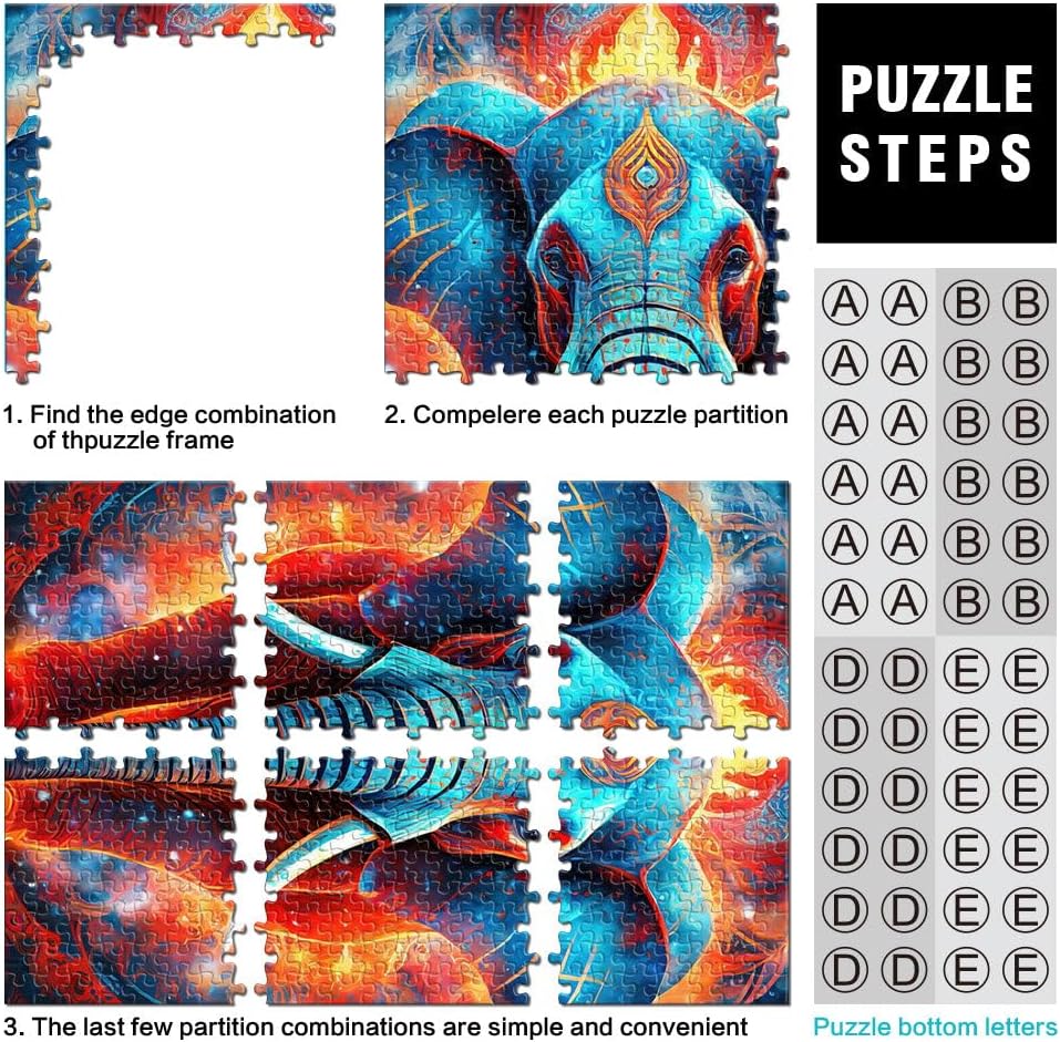 Puzzle difficile per adulti 1000 pezzi Elefante mistico al neon Fatto di legno per età pari o superiore a 14 anni gioco di sfida unico Giochi per famiglie, regali di Natale e compleanno
