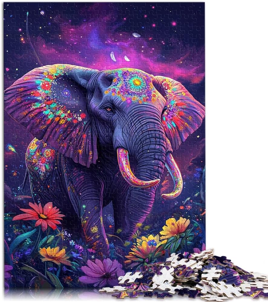 Puzzle difficile per adulti 1000 pezzi Elefante psichedelico Fatto di legno per età pari o superiore a 14 anni Giochi educativi Decorazione della casa Regali di Babbo Natale segreto