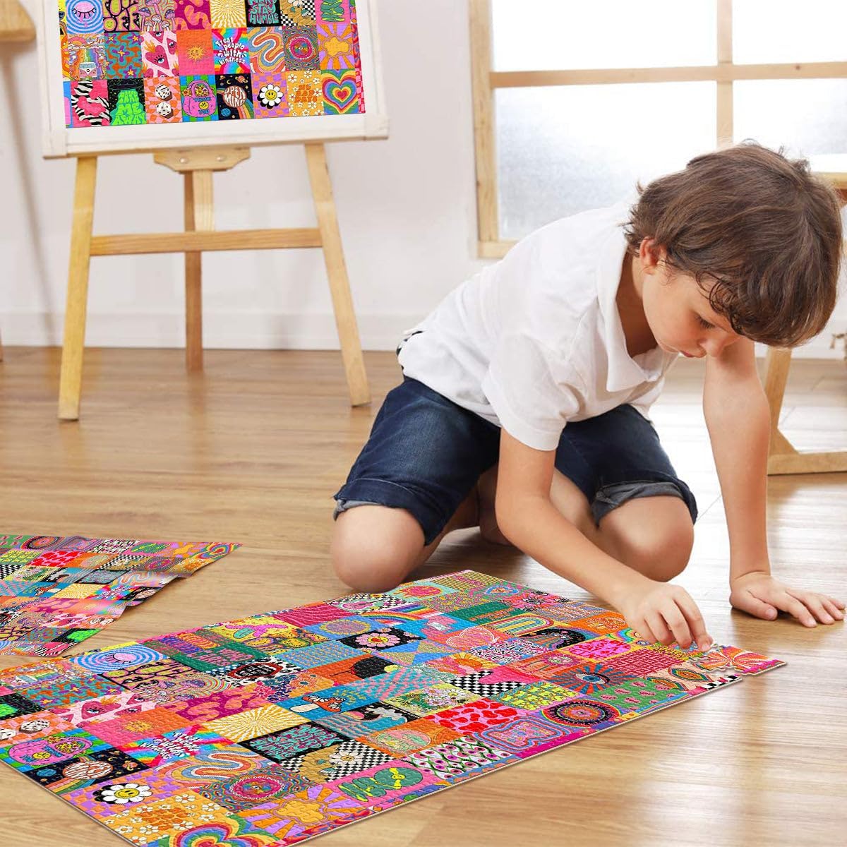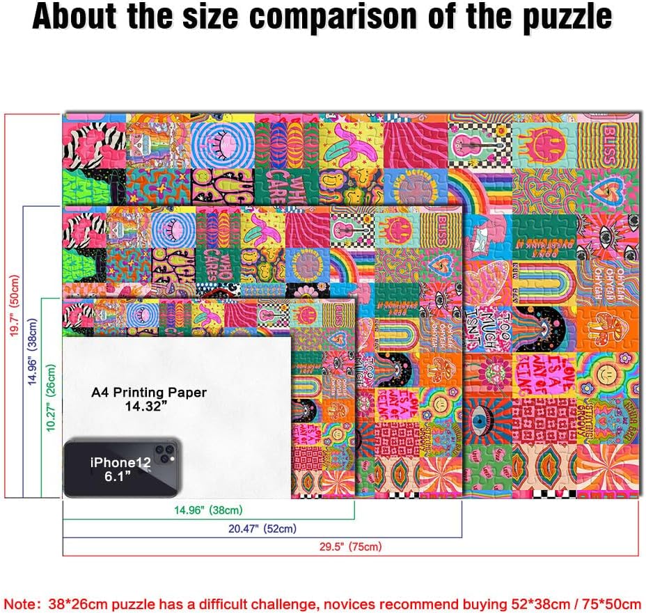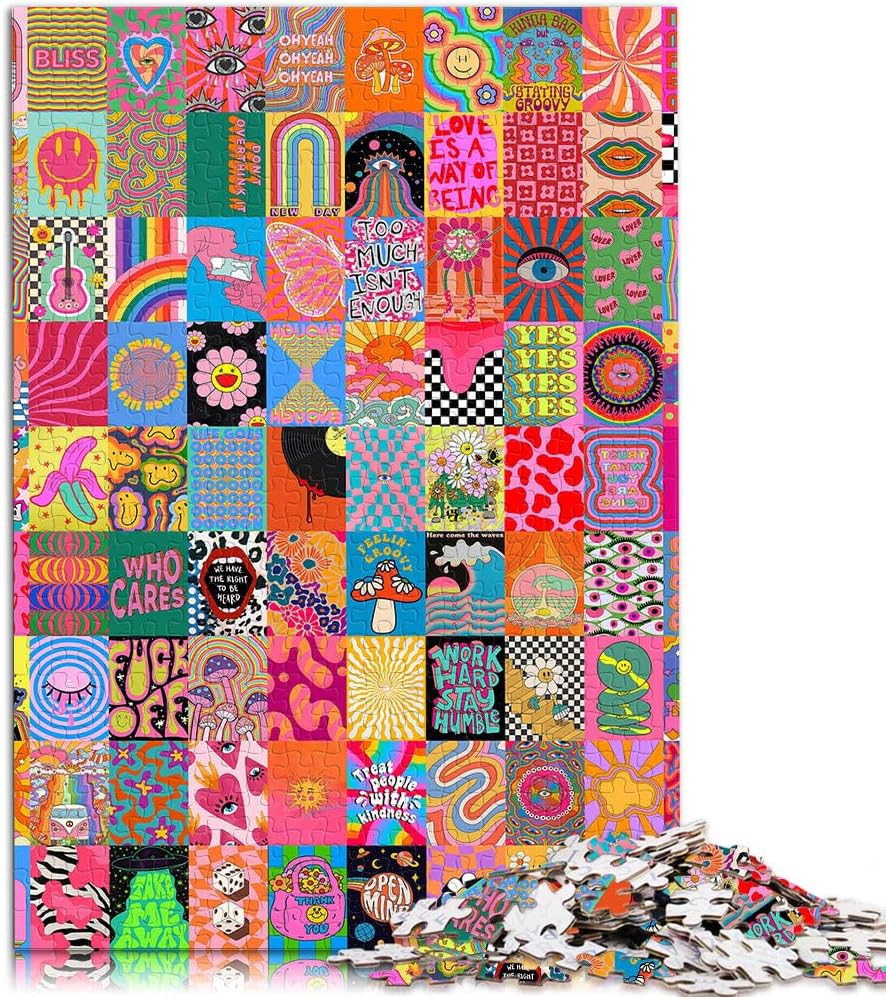 Puzzle difficile per adulti 1000 pezzi Giunzione di colori psichedelici Fatto di legno per età pari o superiore a 14 anni Attività per famiglie regalo di compleanno misurare:50x75cm