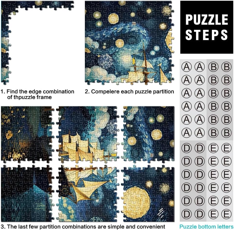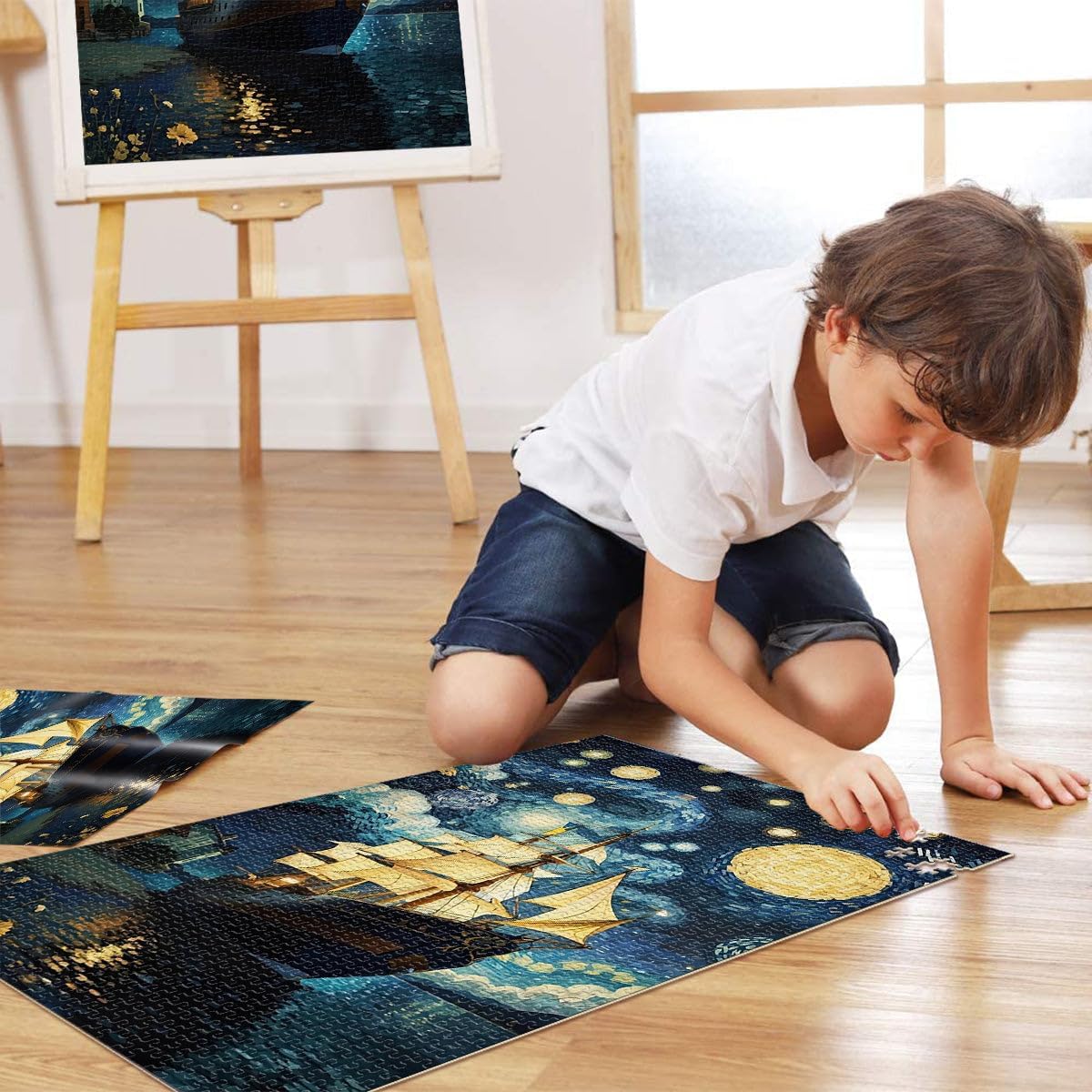 Puzzle difficile per adulti 2000 pezzi Barca della notte stellata Fatto di cartone per età pari o superiore a 14 anni Sfida di gioco giocattolo educativo Ottimi regali e giocattoli misurare:70x100cm