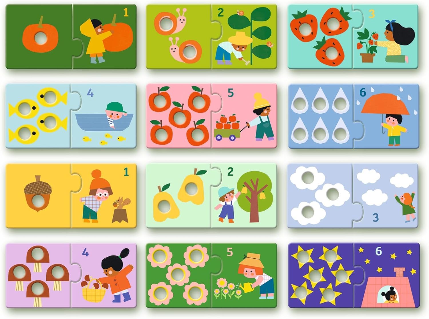 First Numbers Duo Puzzle è un puzzle educativo per iniziare a imparare i numeri. Puzzle perforati per imparare delicatamente i numeri con la punta delle dita, da 1 a 6. Dai 2 anni in su.