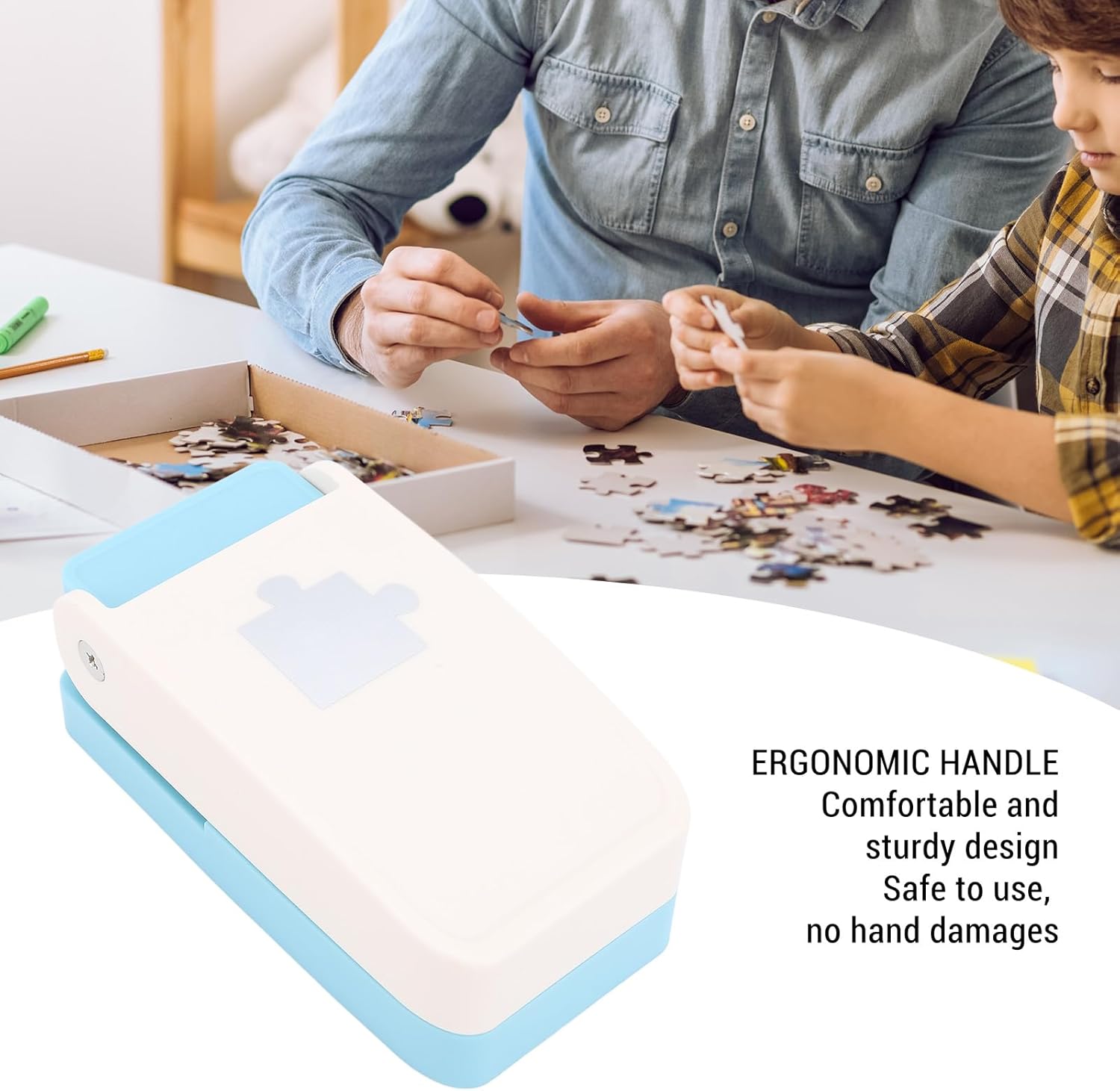 [Design] Questo perforatore per puzzle può imprimere motivi intricati sui materiali con elevata precisione, per creare squisiti puzzle. [Creazione personalizzata] Trasforma facilmente qualsiasi immagine, comprese le foto, in puzzle unici, permettendoti di liberare la tua creatività e aggiungere un tocco personale ai tuoi progetti. [Impugnatura ergonomica] L'impugnatura dal design creativo garantisce un taglio fluido e prestazioni robuste, offrendo un'esperienza di lavorazione confortevole senza causare lesioni alle [Uso versatile] Ideale per creare bellissime etichette di file per album di ritagli, raccoglitori, pianificatori e altro, rendendolo per l'organizzazione 'ufficio, progetti scolastici e varie attività di bricolage. [Materiali] La nostra macchina per creare puzzle è realizzata con una combinazione di plastica e metallo, garantendo un uso duraturo senza sbiadire o rompersi.