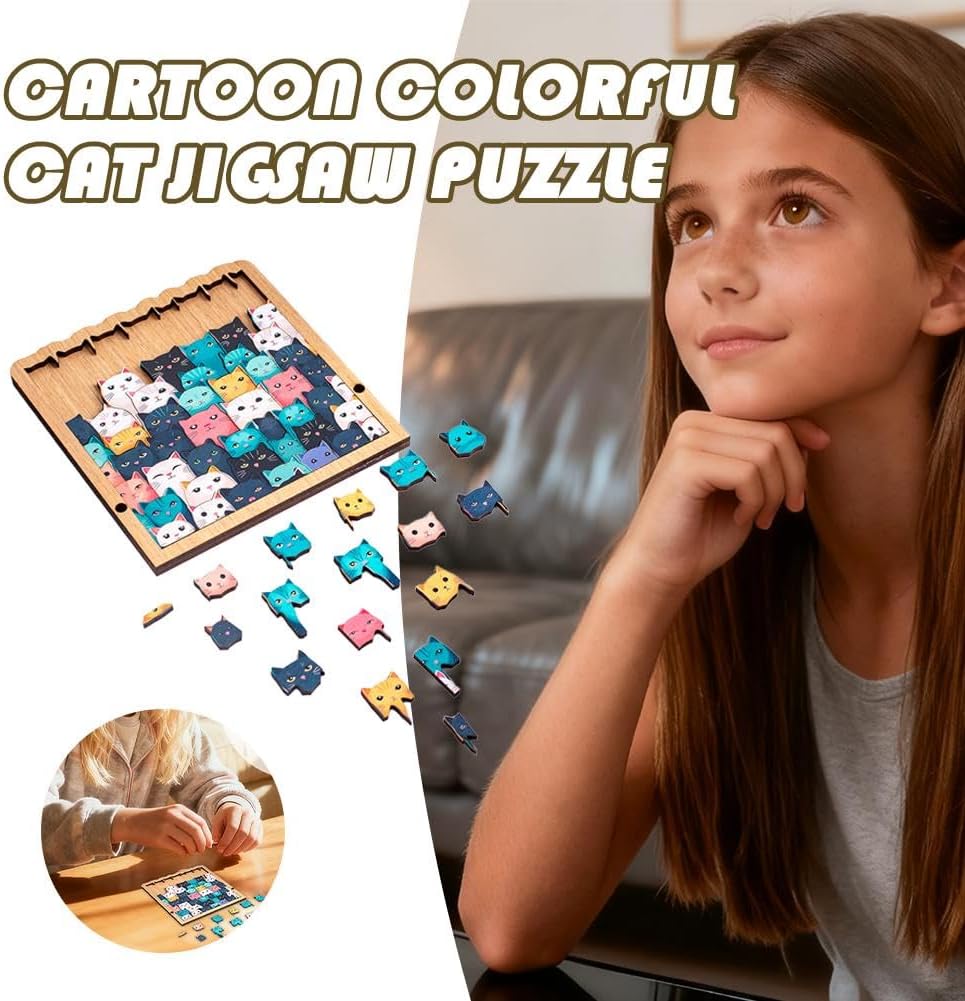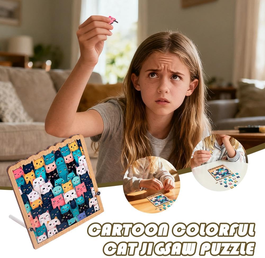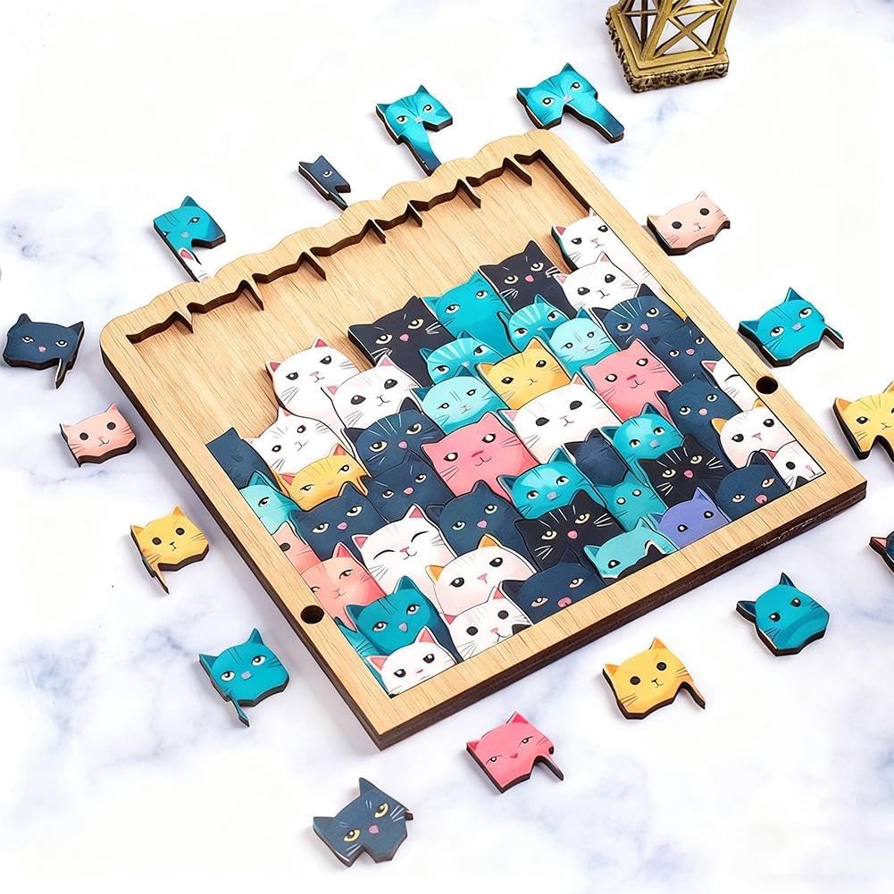 Legno di alta qualità: realizzato in legno ecologico di alta qualità con bordi lisci e senza sbavature per un'esperienza di puzzle sicura e soddisfacente Simpatico design a gatto: questo puzzle in legno presenta un'adorabile cornice a forma di gatto e motivi giocosi di gatto, rendendolo una sfida divertente per gli amanti dei gatti e gli appassionati di puzzle Colori rilassanti M-orandi: i toni morbidi M-orandi creano un look calmo ed elegante, trasformando il puzzle finito del gatto in una bella decorazione per la casa Sfida divertente e rilassante: le forme uniche del puzzle lo mantengono interessante mentre ti aiutano a rilassarti, concentrarti e goderti un divertimento senza stress Ottimo regalo per gli amanti dei gatti: un regalo premuroso per gli appassionati di gatti e gli amanti dei puzzle, perfetto per compleanni, vacanze o come accogliente decorazione per la casa