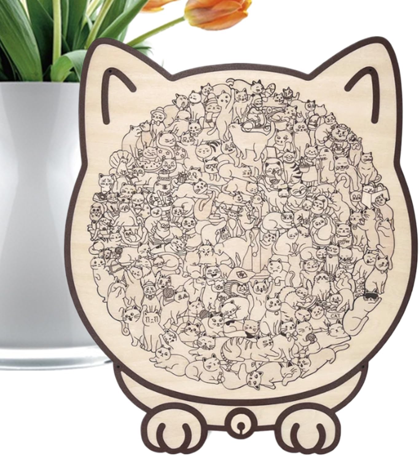 Regalo Straordinario con Dettagli Unici: Il puzzle in legno a forma di gatto cattura immediatamente l'attenzione con i suoi dettagli intricati e raffinati, servendo come un simbolo toccante e commovente per gli amanti degli animali. Crea ricordi gioiosi e momenti felici quando condiviso tra amici o famiglia in occasioni intime o celebrative, arricchendo ogni esperienza con la sua presenza significativa e il suo calore emotivo. Modelli Intricati del Puzzle del Gatto: Caratterizzato da tecniche di taglio fine e una cornice a tema felino, questo puzzle di legno propone disegni dettagliati e affascinanti della texture del pelo, assicurando una sessione di puzzle immersiva e coinvolgente che aggiunge charme e originalità ai tuoi progetti di crafting nel fine settimana, per un hobby creativo e soddisfacente. Promotore di Calma: Il puzzle in legno a forma di gatto incoraggia una mindfulness pacifica fornendo un feedback tattile in legno che aiuta a ridurre lo stress in modo graduale e a portare stato di calma concentrata, offrendo durante periodi di studio o progetti lavorativi quando la tensione è elevata. Questo strumento di relax favorisce il rilassamento e la concentrazione, ideale per momenti di stress in cui si desidera trovare tranquillità e focus mentale attraverso un'attività pi Uso Diffuso: Il Puzzle in Legno a Forma di Gatto funge sia da puzzle funzionale che da elegante elemento decorativo per il living. Esalta la camera da letto con il suo design accattivante ed è per l'uso in dormitorio e sul comodino, promuovendo relax e stimolazione mentale negli ambienti studio. La sua integrazione senza soluzione di continuità negli display su scaffali lo rende un complemento ideale per valorizzare la casa in modo pratico e stilistico. Materiale Forte e Stabile: Le superfici finemente levigate del puzzle in legno a forma di gatto assicurano una levigatezza senza schegge per una manipolazione sicura durante l'assemblaggio dei pezzi. I componenti in legno naturale sono forti e resistenti alla deformazione nel , migliorando il comfort e il divertimento durante le attività di puzzle con la famiglia e amici, offrendo ore di intrattenimento senza preoccupazioni.