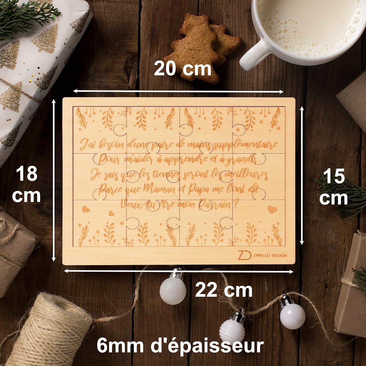 👶 Cerchi un'idea originale per fare la tua richiesta al futuro padrino? Il puzzle in legno Zinello Design è un annuncio ideale per una sorpresa personalizzata. 🍲 Il futuro sponsor assemblerà i pezzi di questo puzzle 3D per vedere il messaggio "Ho bisogno di un paio di mani in più per aiutarmi a imparare e crescere". So che il tuo sarà il migliore perché me lo hanno detto mamma e papà. Vuoi essere il mio padrino? Disponibile anche nella versione Madrina, Papà, Nonna, Nonno. ❤️ Condividi un momento ricco di emozioni con questo regalo personalizzato unico e insolito, realizzato in modo semi-artigianale e realizzato con legno di faggio di alta qualità. Il testo e i motivi sono incisi con un laser ad alta precisione. 🎁 Un regalo perfetto per una donna incinta o un futuro padre: hai una coppia di amici o parenti nella tua famiglia che aspettano un lieto evento? Aiutali a pianificare l'annuncio della gravidanza regalando loro questo puzzle in legno, ad esempio per il loro baby shower. 🧩 Il puzzle dell'annuncio di nascita misura 21 x 15 cm e contiene 12 pezzi. Viene consegnato smontato in un sacchetto regalo di cotone sul quale è inserito un pezzo di puzzle con la scritta “Surprise!” è allegato. 🇫🇷 Zinello Design è un marchio francese che progetta tutti i suoi prodotti in Francia. Attribuiamo grande importanza alla qualità dei nostri prodotti. Se, tuttavia, hai ricevuto un prodotto che non soddisfa le tue aspettative, beneficerai di una garanzia di rimborso di 30 giorni.