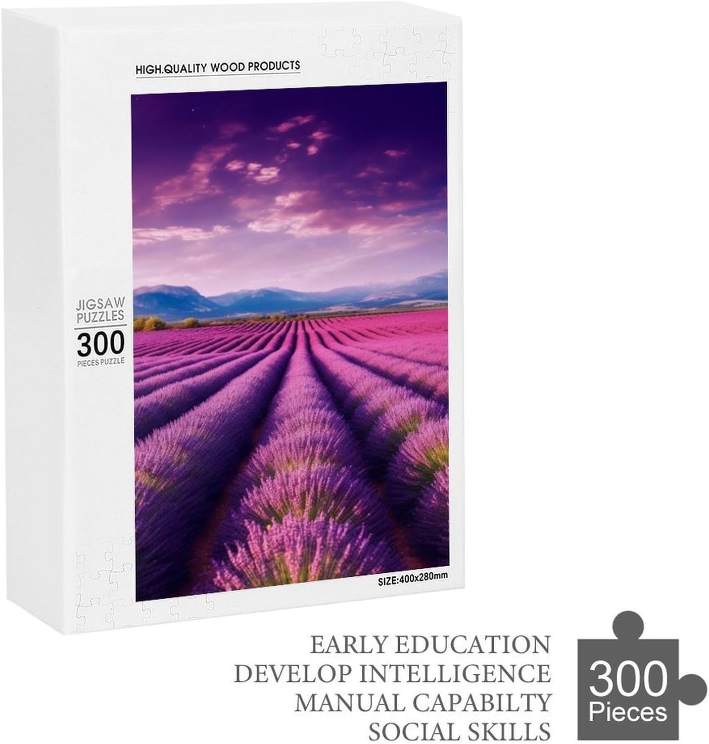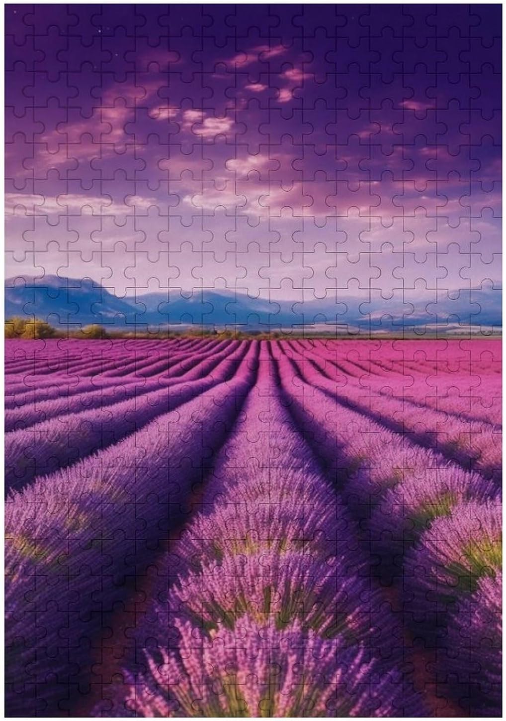Puzzle in legno per adulti, con campi di lavanda stampati, per adulti, con una bella scatola