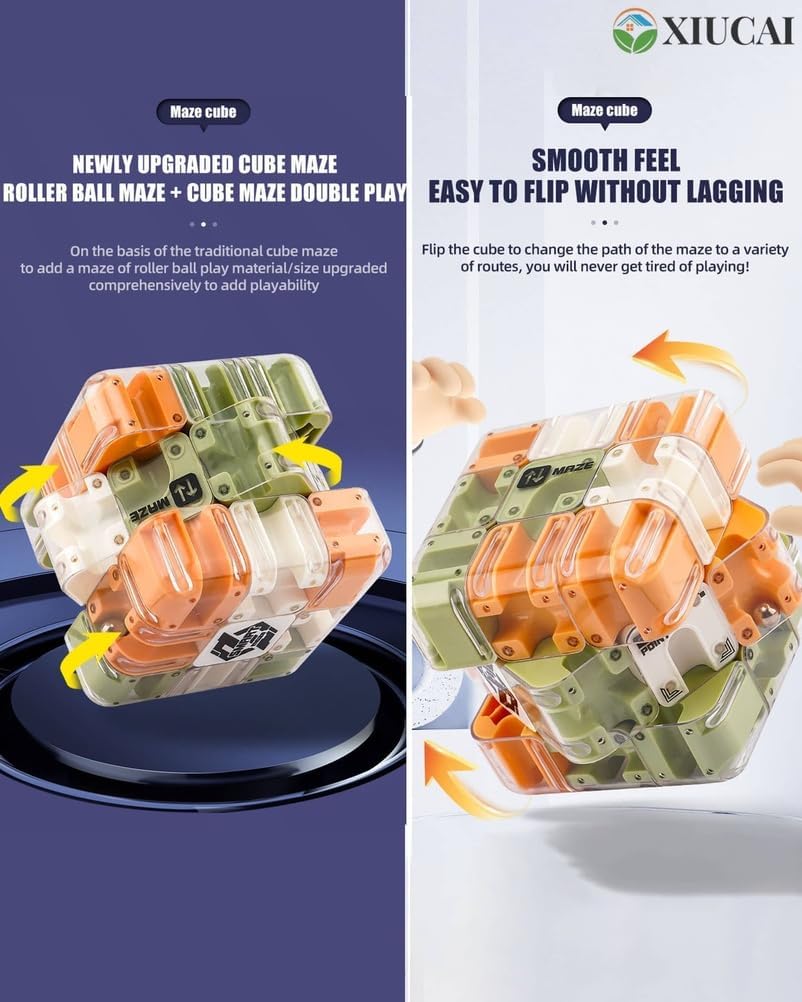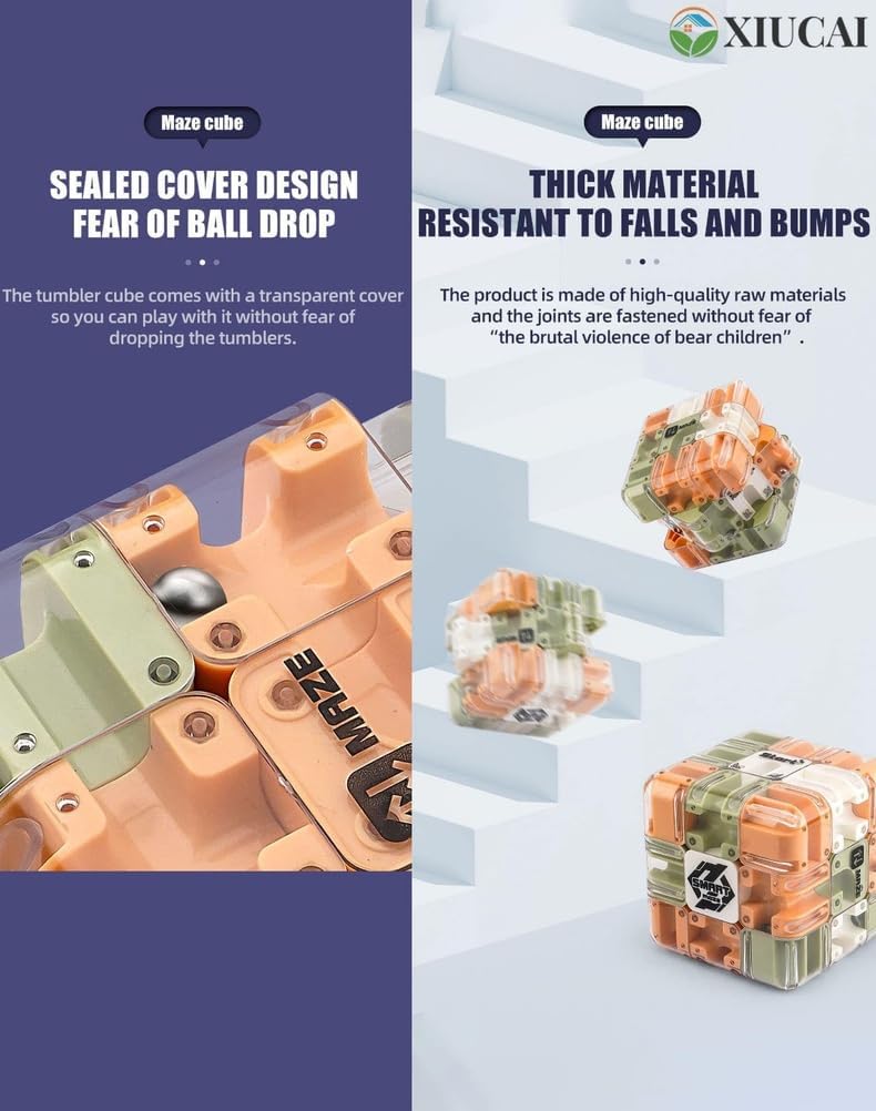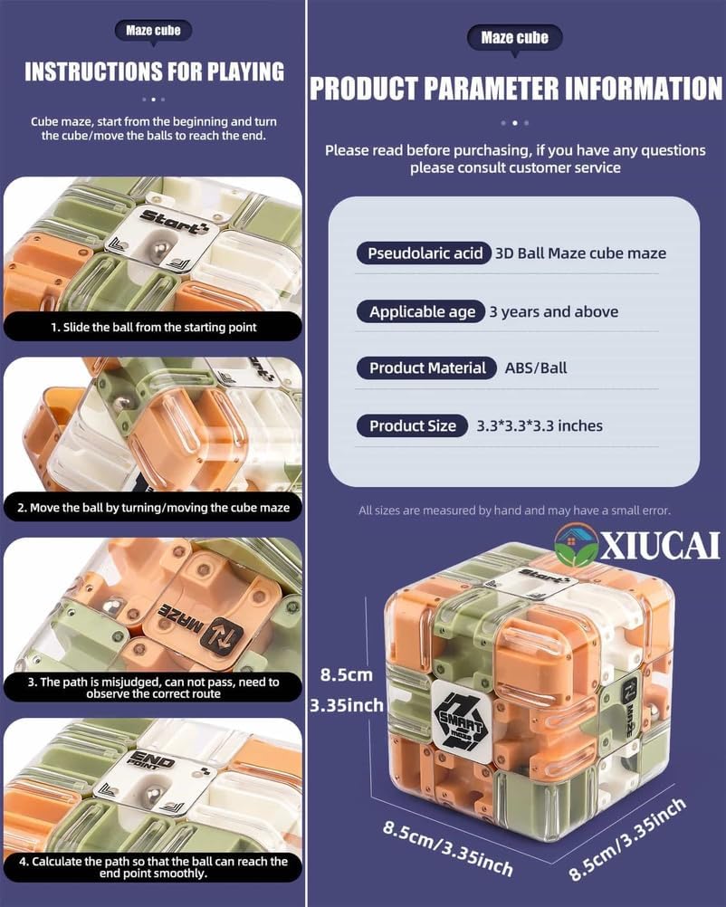 1. DOPPIA MODALITÀ DI GIOCO: questo puzzle labirinto combina un puzzle tradizionale con un design a labirinto con palline che consente agli utenti di ruotare il puzzle per cambiare percorso e guidare la palla attraverso il labirinto. Migliora le capacità di risoluzione dei problemi e l'immaginazione spaziale per bambini e adulti 2. SVILUPPA ABILITÀ COGNITIVE: sfidando logica e concentrazione, questo puzzle 3D promuove la crescita mentale, migliora la coordinazione occhio-mano e aiuta i bambini a sviluppare concentrazione e pazienza divertendosi 3. DESIGN STABILE E SICURO: Realizzato in ABS di alta qualità materiale con una copertura trasparente sigillata per evitare la perdita della pallina, il puzzle è antiurto e abbastanza resistente da resistere a maneggiamenti bruschi da parte di giovani utenti 4. PORTATILE E AFFASCINANTE: le dimensioni compatte 8,5 x 8,5 x 8,5 cm lo rendono facile da trasportare in viaggio o nel tempo libero fornendo intrattenimento senza fine in scenari come sale d'attesa, uffici o riunioni di famiglia 5. IDEALE PER IL DIVERTIMENTO MULTIGIOCATORE: Supporta giochi di cronometraggio competitivi per genitori e figli o amici promuove l'interazione sociale e il lavoro di squadra rendendo l'apprendimento divertente e interattivo