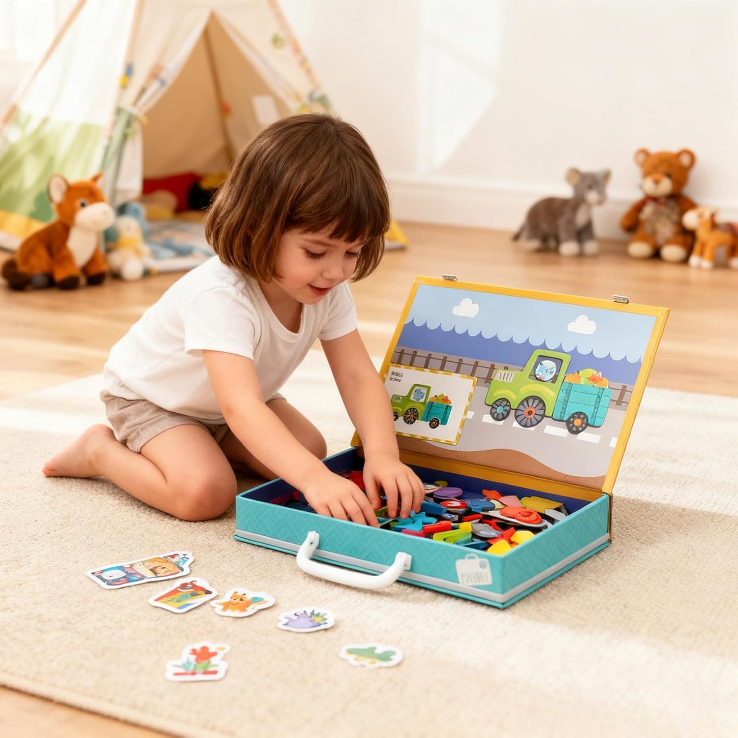 Esperienza di Gioco Creativo: I puzzle magnetici per bambini ispirano creatività e comunicazione coinvolgendo le famiglie in attività collaborative di decorazione del viso, promuovendo il emotivo e creando momenti gioiosi per l'interazione genitore-figlio durante le sessioni di gioco, aiutando a sviluppare capacità espressive e legami più stretti attraverso un'esperienza ludica e educativa Sviluppo con Puzzle Magnetici: I puzzle magnetici per bambini presentano numerosi modelli di personaggi a tema che coprono professioni e stagioni, ideali per migliorare l'osservazione, la logica e la creatività. Questi giochi educativi mantengono i bambini impegnati in attività divertenti durante il familiare o le sessioni di gioco individuale, favorendo lo sviluppo di competenze cognitive attraverso un'esperienza coinvolgente e stimolante. Attività Creativa Coinvolgente: Il puzzle magnetico con funzionalità mescola e combina permette di sperimentare diverse disposizioni di facciali, stimolando il pensiero immaginativo e garantendo ore di divertimento piacevole a casa o in viaggio, ideale per sviluppare creatività e intrattenimento in modo coinvolgente e dinamico per tutti gli utenti. Materiali Durevoli e Affidabili: Realizzato con componenti magnetici spessi e bordi lisci, questo puzzle magnetico incentiva il miglioramento delle abilità motorie fini, servendo come giocattolo educativo longevo adatto per esplorazioni ripetute in vari contesti di apprendimento giocoso. I materiali di alta qualità assicurano durabilità e affidabilità, supportando un uso intensivo senza compromettere la sicurezza o l'efficacia educativa, e offrendo opportunità creative per lo sviluppo motorio in Confezione Regalo Compatta: Questi puzzle magnetici, dotati di una tavola magnetica a doppia faccia, prevengono la perdita dei pezzi durante i viaggi, offrendo una funzionalità affidabile e maggiore divertimento sia quando giocati in interni sia portati in avventure all'aperto. La confezione regalo compatta li rende facili da trasportare e donare, ideali per occasioni come compleanni o feste. Il design assicura che i pezzi rimangano al sicuro, permettendo un'esperienza di gioco continuo e piacev