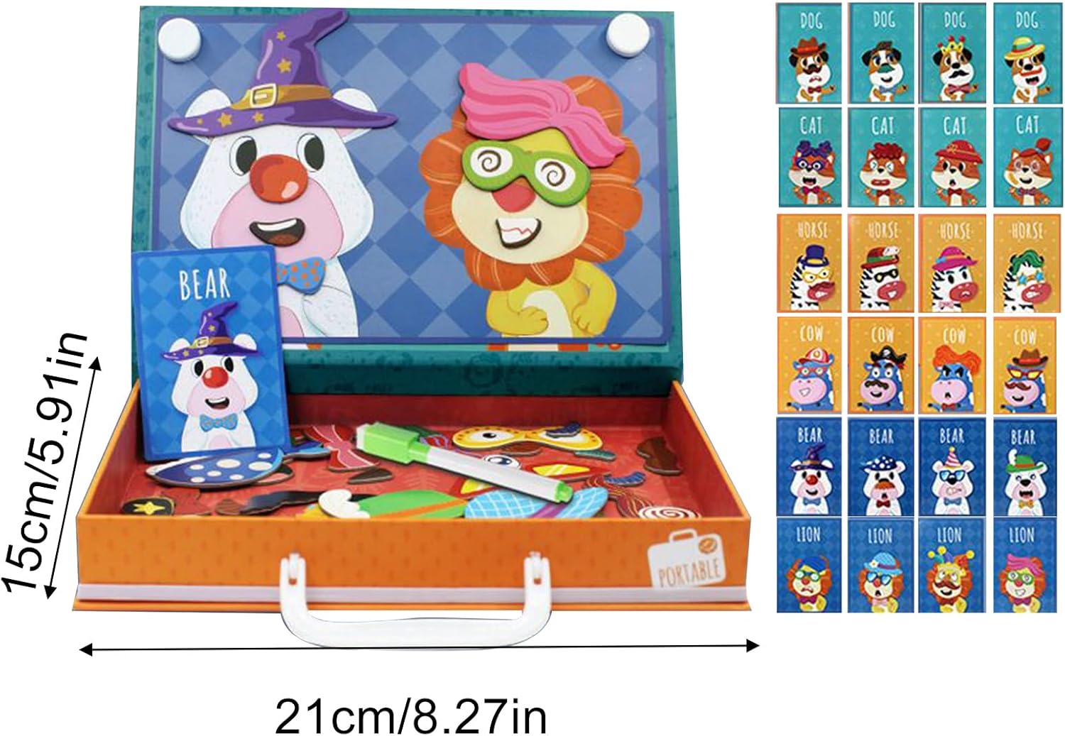 Strumento di Apprendimento Interattivo: I puzzle magnetici per bambini migliorano la comunicazione e la creatività attraverso attività collaborative di decorazione del viso, promuovendo il emotivo e permettendo a genitori e figli di divertirsi insieme in un ambiente giocoso e coinvolgente, ideale per sviluppare abilità sociali e rafforzare le relazioni familiari in modo naturale e piacevole durante il gioco quotidiano Strumento di Apprendimento Interattivo: I puzzle magnetici per bambini sono progettati con vari modelli tematici che evidenziano professioni e stagioni, contribuendo a sviluppare le abilità di osservazione e logica. Attraverso un gioco pratico e coinvolgente, i bambini migliorano queste competenze durante lezioni strutturate o momenti di gioco libero, rendendo l'apprendimento un'esperienza dinamica e accessibile. Divertimento Immaginativo per Tutti: Questo puzzle magnetico a doppia faccia presenta un design creativo del viso magnetico che permette di esplorare più combinazioni di facciali, aumentando il coinvolgimento in ambienti di apprendimento giocosi, per un divertimento immaginativo adatto a tutte le età e occasioni di gioco. Materiale Sicuro e Resistente: Il puzzle magnetico è realizzato con pezzi magnetici spessi e durevoli, caratterizzati da bordi lisci che garantiscono una manipolazione sicura e favoriscono lo sviluppo delle abilità motorie fini. Offre numerose opportunità per esperienze di apprendimento creativo, mantenendo la sua integrità senza mostrare di usura anche dopo un uso prolungato. La qualità dei materiali assicura resistenza e sicurezza, ideale per giochi educativi frequenti che stimolano la c Design Magnetico da Viaggio: I puzzle magnetici sono dotati di una tavola magnetica a doppia faccia che garantisce la conservazione sicura di tutti i pezzi e la facilità di trasporto, migliorando la portabilità e offrendo ore di divertimento come un regalo premuroso per qualsiasi occasione. La tavola magnetica assicura che i pezzi non si perdano durante gli spostamenti, rendendo il gioco ideale per viaggi, vacanze o momenti in famiglia. Questo design pratico e funzionale permette di portare il p