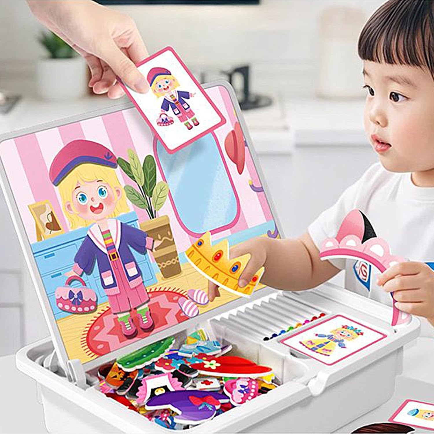 Design Forme: Incorpora le del design e forme utilizzando schemi di colore stratificati, promuove le capacità di abbinamento cromatico e l'interesse immaginativo mentre i bambini interagiscono con i pezzi del puzzle in ambienti di gioco educativo Maniabilitá Comoda e Sicura: I bordi privi di schegge sono studiati per la massima sicurezza e una pelle protetta, assicurando una presa sicura durante l'assemblaggio ripetuto e tranquillità per i genitori nei giochi creativi ed educativi indoor con puzzle magnetici di qualità Divertimento all'aperto: Questo giocattolo magnetico di bambole in legno ha una scatola compatta che garantisce facilità di conservazione durante i viaggi, ideale per intrattenere i bambini nei sedili posteriori 'auto durante lunghi tragitti, mantenendo l'ordine e coinvolgendo in attività creative Incentivo Creatività con Ruoli: Incoraggia sfide di ruolo immaginative stimolando la creatività e potenziando la coordinazione occhio-mano attraverso set di carte tematici, favorendo lo sviluppo a percezione spaziale durante esplorazione e apprendimento nel gioco. Divertimento Interattivo: Il puzzle magnetico offre un esperienza di gioco coinvolgente che promuove l interazione sociale e ispira processi di pensiero creativo, permettendo di godere momenti di qualità da soli o con i mentre si coltivano connessioni più profonde in modo naturale