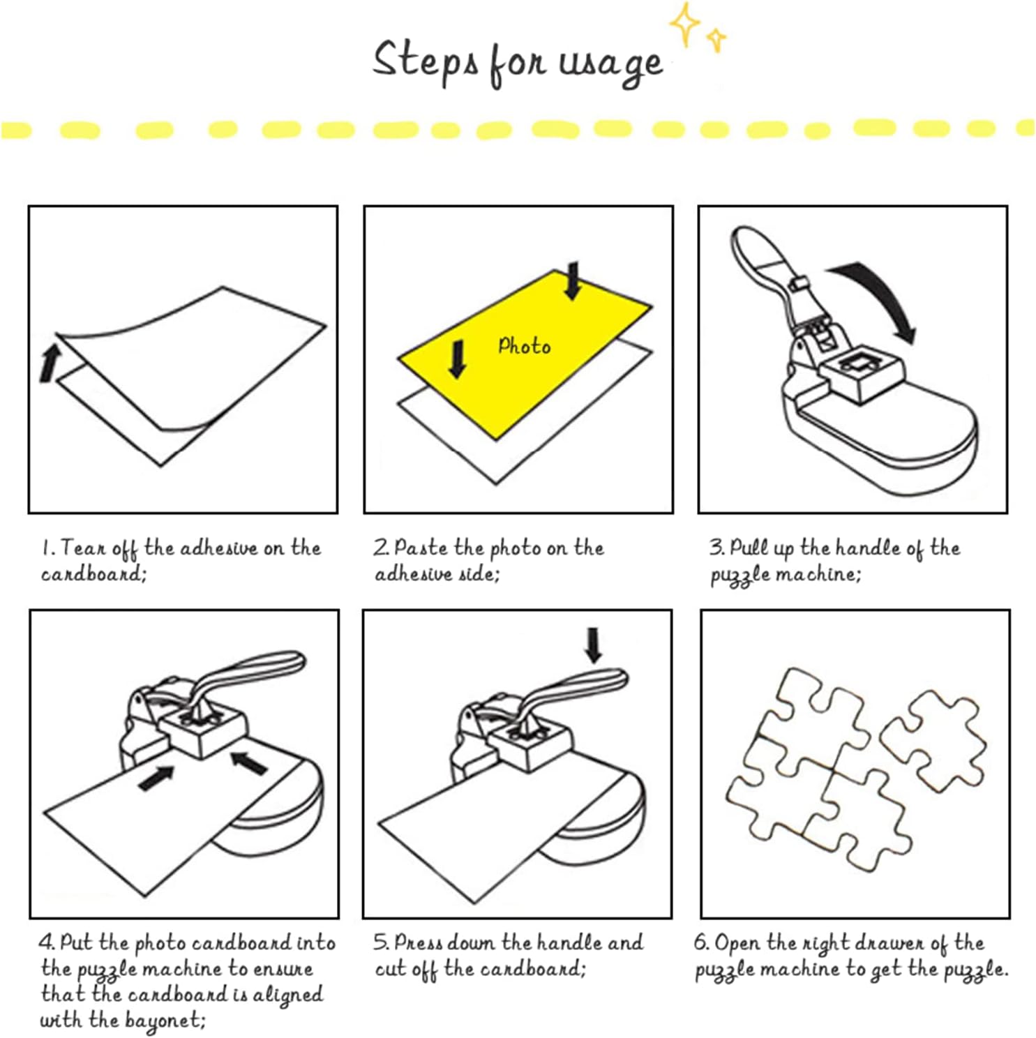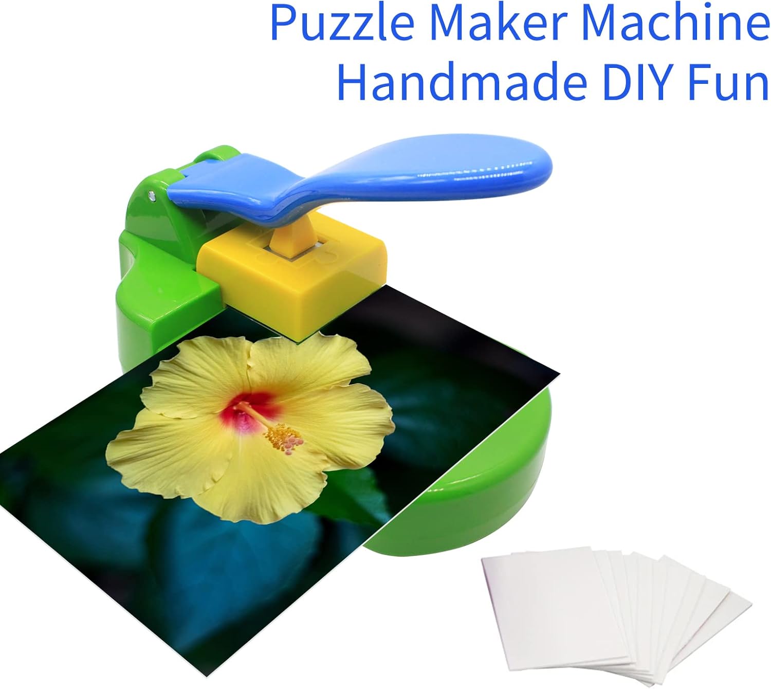 Set di produttori di puzzle fai -da -te - Con questa macchina, puoi fare la tua foto del puzzle e creare puzzle unici soli. Divertimento e creazione: puoi scegliere i tuoi motivi preferiti, immagini, foto con amici e familiari, basarsi nella scheda di schiuma e farli puzzle. È divertente mescolare e riorganizzarli. Come usare: prima strappa la carta protettiva del cartone, incolla la tua foto 4x6 pollici, metti il cartone sotto il dado a forma di puzzle, premi duro, otterrai un pezzo di puzzle, che è nascosto sotto nel piccolo cassetto! - brillante e design squisito, ottimo per i bambini come di Natale, di compleanno, ecc. Realizzato in addominali premium e materiale in acciaio, affinché i bambini giochino ogni giorno e facili tagliare le schiume del puzzle. (Si prega di utilizzare correttamente il produttore di puzzle per prevenire lesioni alla mano.)