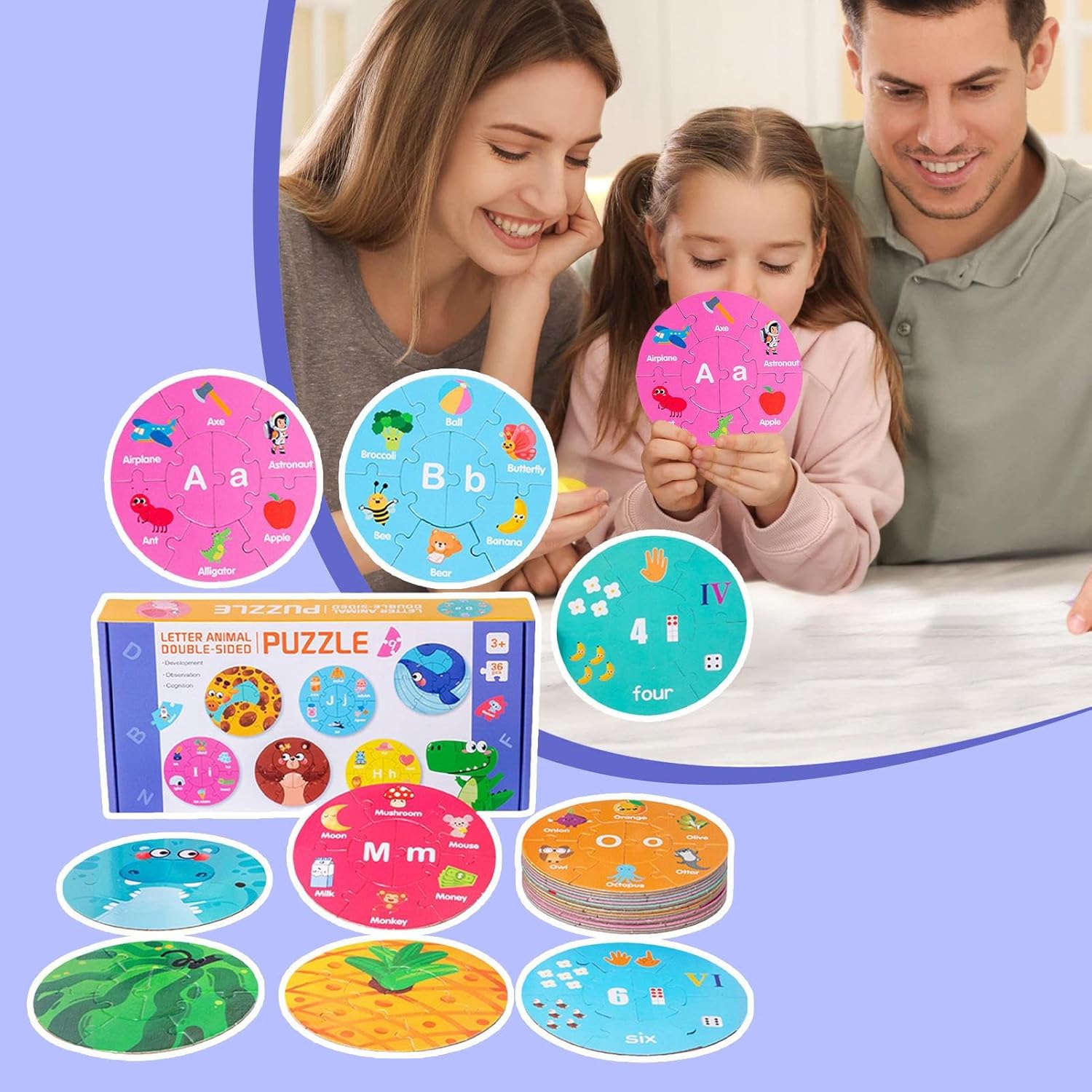 Promuove le Capacità: Giocattoli alfabeto e numeri progettati per affinare il riconoscimento dei simboli, funzionando come strumenti per lo sviluppo cognitivo durante le attività di apprendimento precoce, aiutando i bambini a costruire abilità fondamentali tramite esperienze di gioco interattivo Apprendimento Interattivo: Puzzle progettato per apprendimento interattivo con associazioni lettera-animale sul fronte e numeri-scena sul retro, potenzia le capacità cognitive e rinforza la memoria attraverso molteplici modalità di gioco Regalo Educativo Completo: Questo set promuove lo sviluppo cognitivo migliorando attenzione e prontezza mentale attraverso attività divertenti, ideale per esperienze di apprendimento interattivo che ispirano naturalmente le giovani menti Design a Prova di Bambino: Costruito con materiali sicuri per l'infanzia, presenta una superficie liscia senza scheggiature, garantendo un gioco sicuro e duraturo con totale assenza di odori per maggiore divertimento. Design per Manine: Forme arrotondate e lisce facilitano la presa promuovendo lo sviluppo motorio e perfezionando la coordinazione occhio-mano durante le attività di gioco prescolastico
