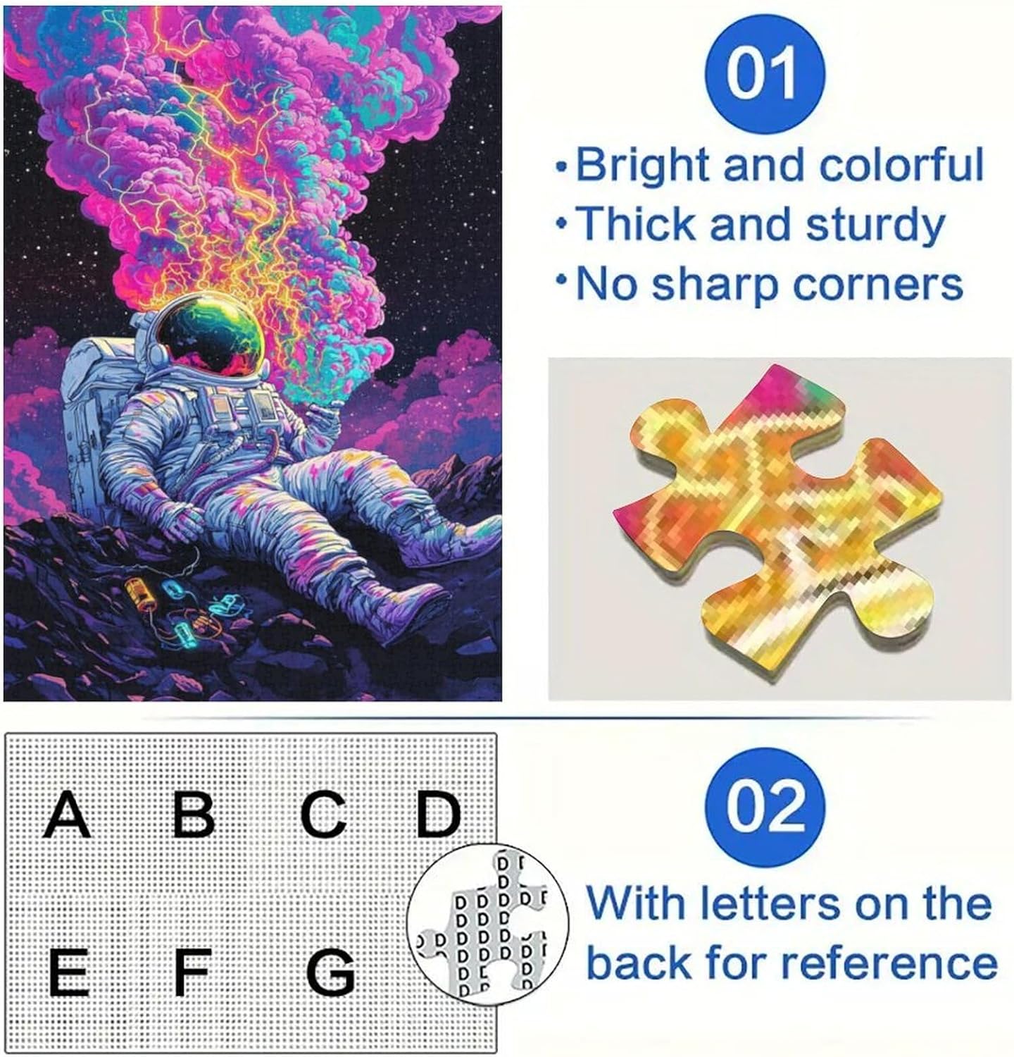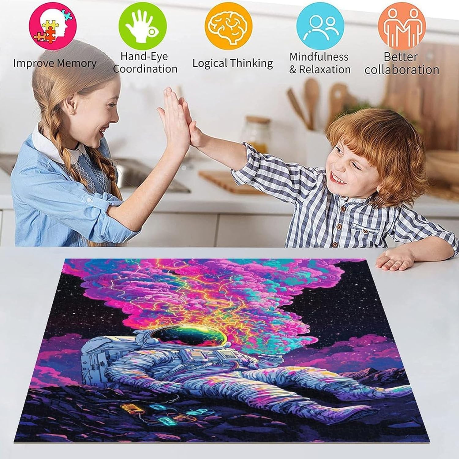 Puzzle per adolescenti Puzzle da 1000 pezzi Astronauta psichedelico, giocattoli antistress, regali di compleanno unici per ragazzi dai 14 anni in su, 26x38cm
