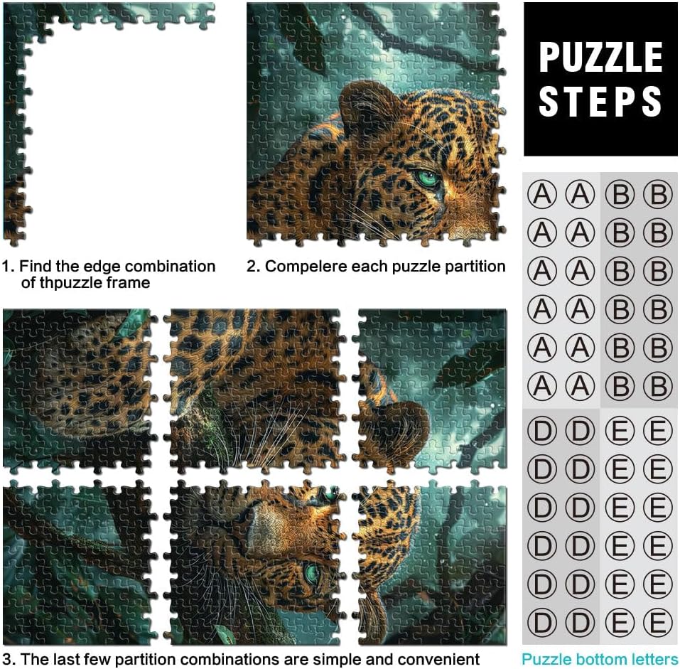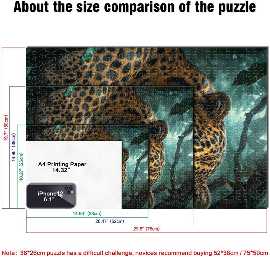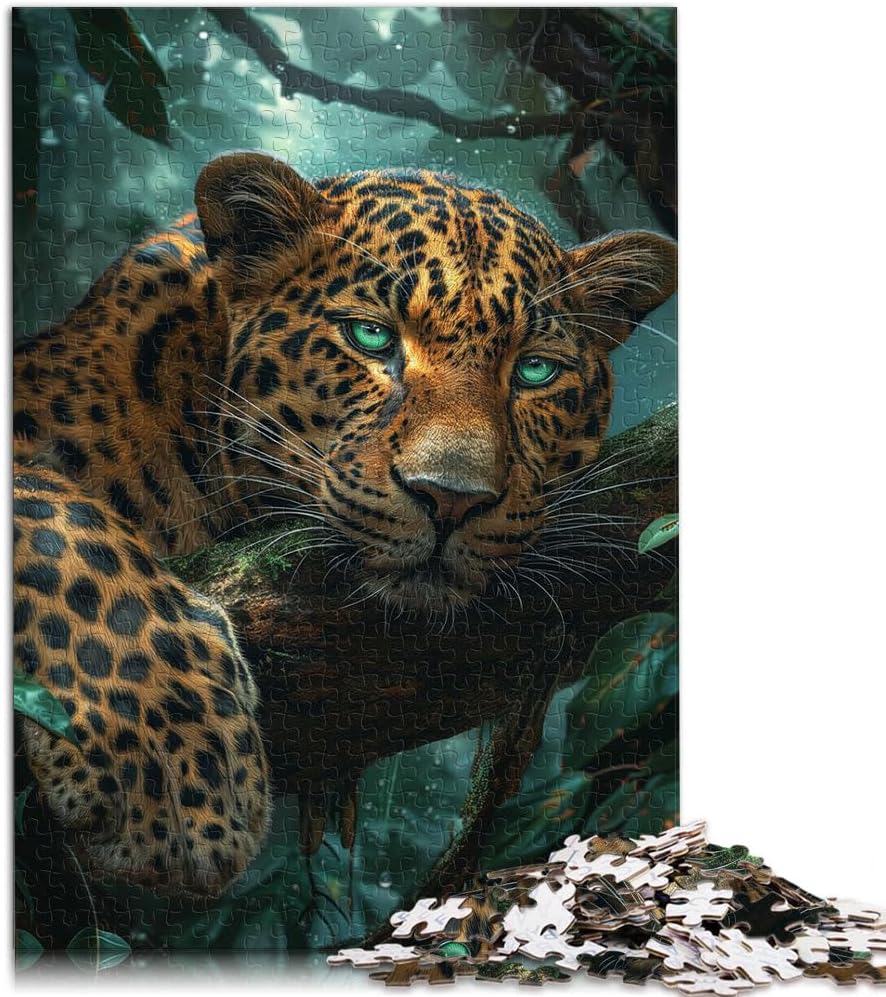 Puzzle per adulti 1000 pezzi leopardo della giungla tropicale Fatto di legno per età 14+ Gara di velocità a mano Regali di compleanno di Natale misurare:50x75cm