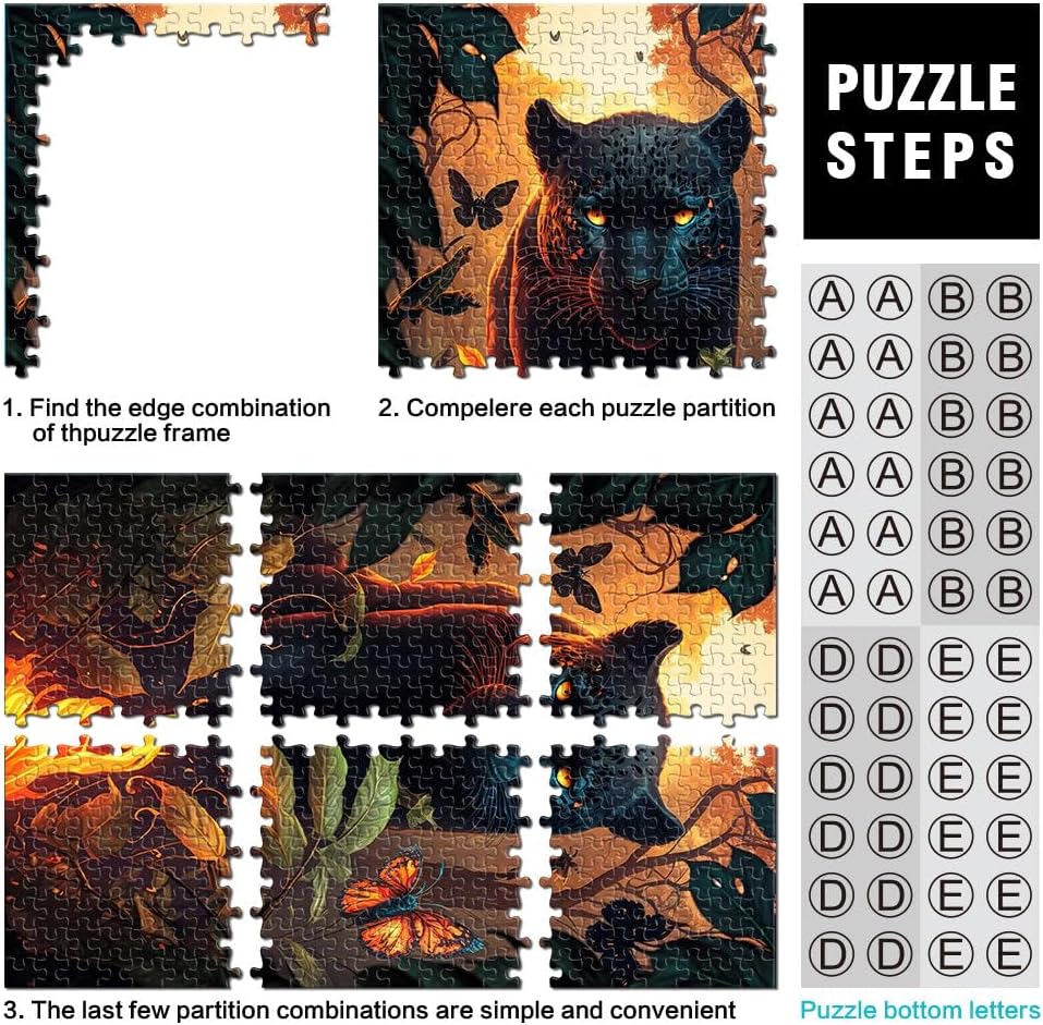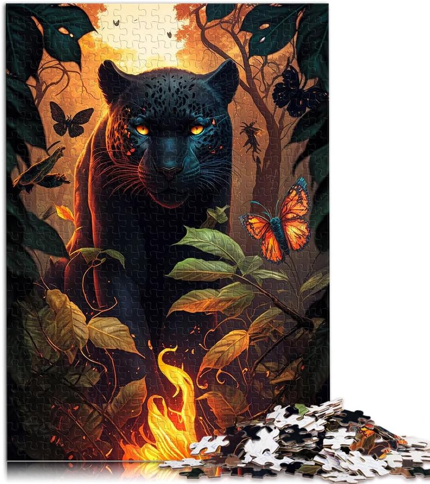 Puzzle per adulti 1000 pezzi Pantera Nera Infuocata Fatto di legno per età 14+ Interazione genitore-figlio Regali interessanti per ridurre lo stress misurare:50x75cm