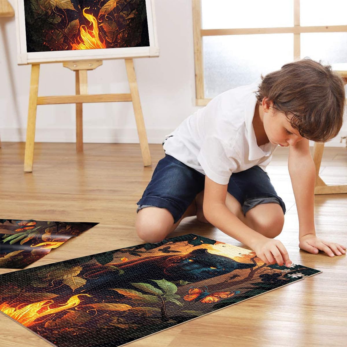 Puzzle per adulti 2000 pezzi Pantera Nera Infuocata Fatto di cartone per età 14+ Interazione genitore-figlio Regali interessanti per ridurre lo stress misurare:70x100cm