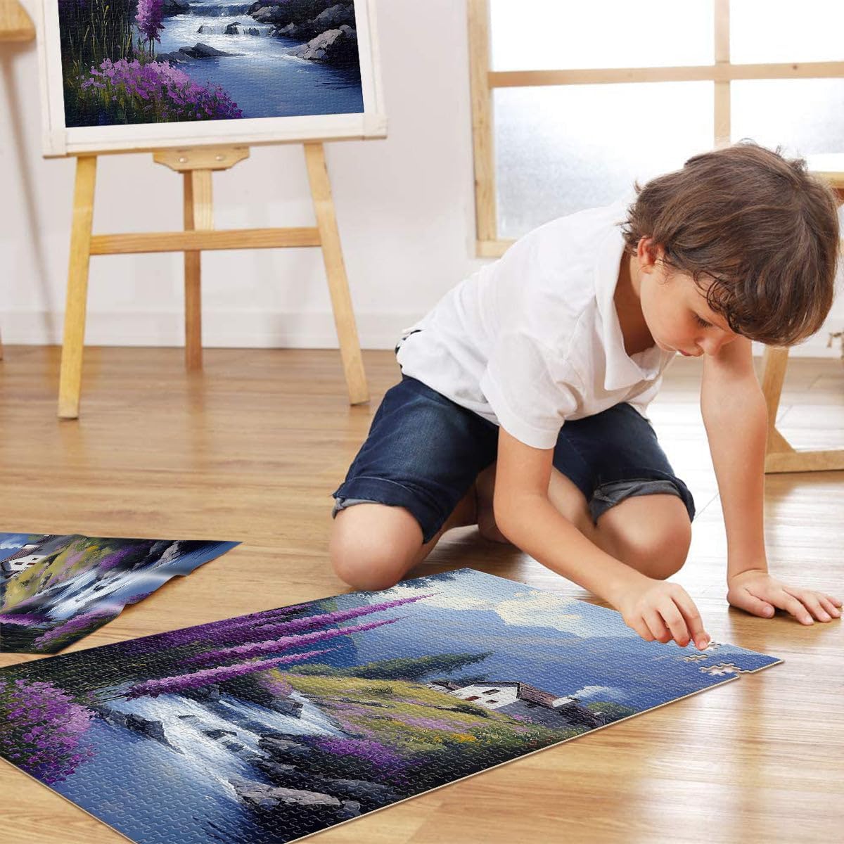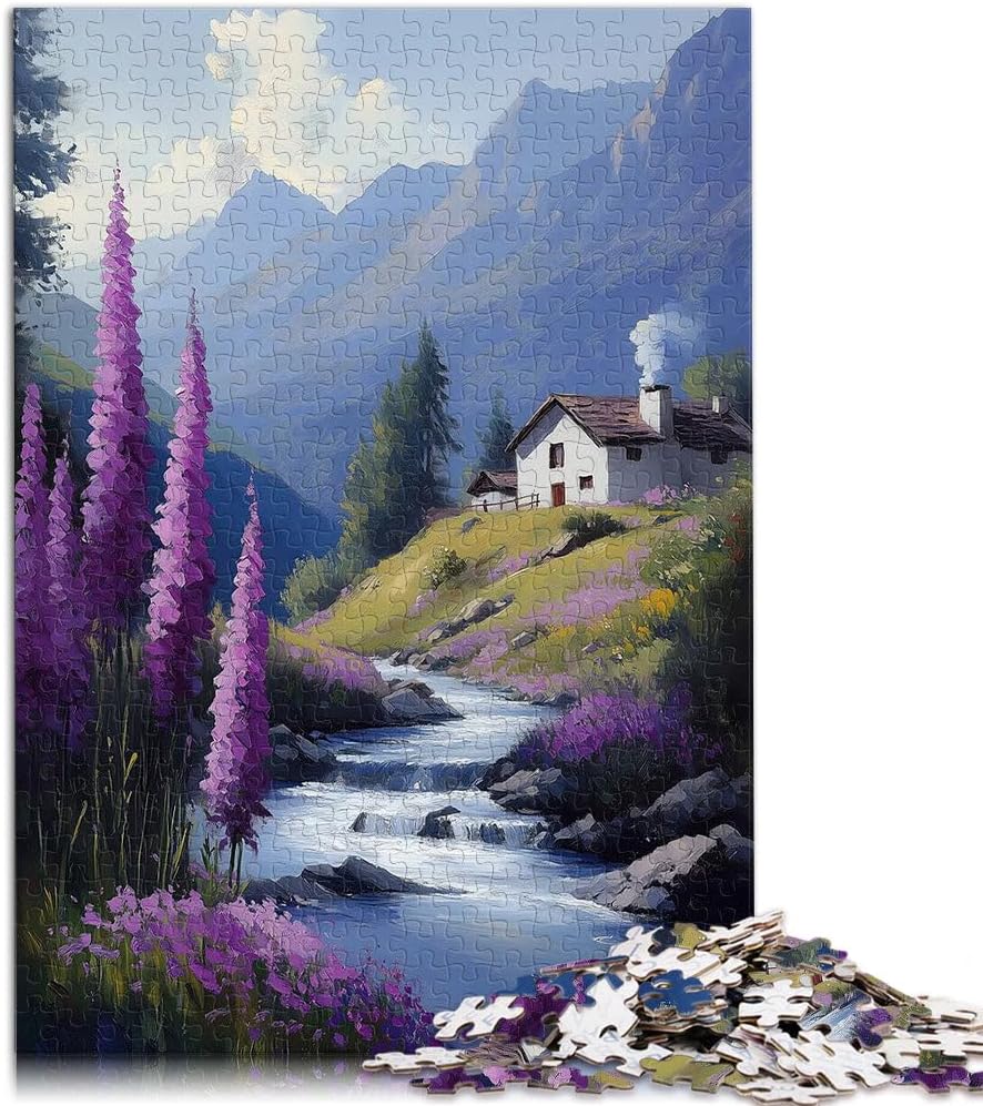 puzzle per adulti 2000 pezzi Ruscello di Lavanda di Montagna Fatto di cartone per e da 14 anni in su Giocattolo educativo antistress Regalo di compleanno, regali, arte murale misurare:70x100cm